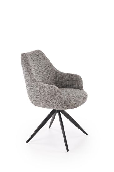 Krzesło 564 Fred popielate to metalowe krzesło z obrotowym siedziskiem 360°, tapicerowane tkaniną w kolorze popielatym. Wymiary 60 × 63 cm, wysokość 87 cm, stabilny czarny stelaż, nowoczesny design i komfort użytkowania.
