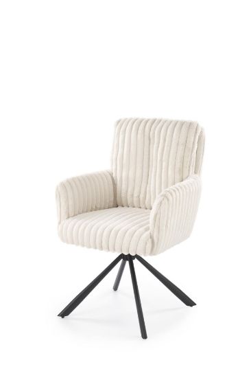 Krzesło Sylas 572 łączy nowoczesny design z praktycznymi rozwiązaniami. Obrotowe siedzisko 180° zwiększa swobodę ruchu, szerokie siedzisko i stabilny metalowy stelaż gwarantują wygodę i bezpieczeństwo. Tapicerka w kremowym odcieniu nadaje wnętrzu elegancji i łatwo wkomponowuje się w różnorodne aranżacje.
