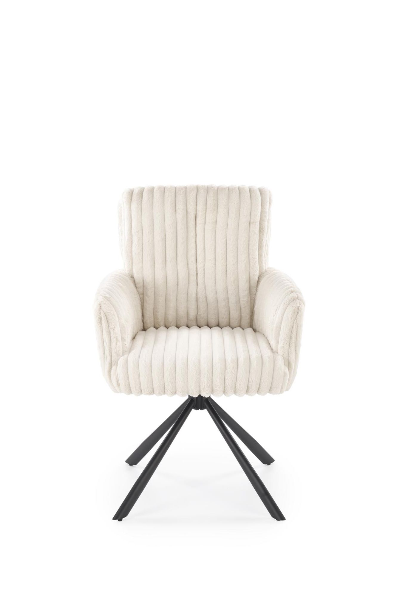Siedzisko i oparcie krzesła 572 Sylas pokryte są wysokiej jakości tkaniną VITO w kremowym odcieniu. Tapicerka jest miękka w dotyku, odporna na przetarcia i łatwa w utrzymaniu w czystości. Ergonomiczny kształt siedziska zapewnia komfort nawet podczas długotrwałego użytkowania, a neutralny kremowy kolor wprowadza do wnętrza elegancję i przytulność.
