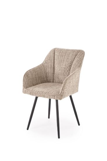 Siedzisko i oparcie krzesła 576 Aurelo pokryte są wysokiej jakości tkaniną w neutralnym beżowym odcieniu. Tapicerka jest przyjemna w dotyku, trwała i łatwa do utrzymania w czystości. Ergonomiczny kształt siedziska zapewnia komfort podczas wielogodzinnego użytkowania, a neutralny beż harmonijnie wpasowuje się w różnorodne aranżacje wnętrz, wprowadzając elegancję i przytulność.