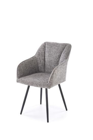 Siedzisko oraz oparcie krzesła 576 Aurelo zostały wykończone tapicerką z tkaniny w kolorze popielatym. Materiał jest przyjemny w dotyku i odpowiedni do codziennego użytkowania. Popielaty kolor jest uniwersalny i ponadczasowy, dzięki czemu krzesło dobrze komponuje się z jasnymi i ciemnymi meblami, stołami drewnianymi, metalowymi oraz nowoczesnymi blatami. Tkanina zachowuje estetyczny wygląd i łatwo wpisuje się w różne style wnętrzarskie.