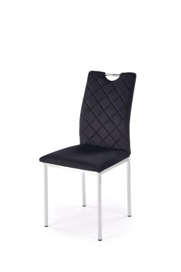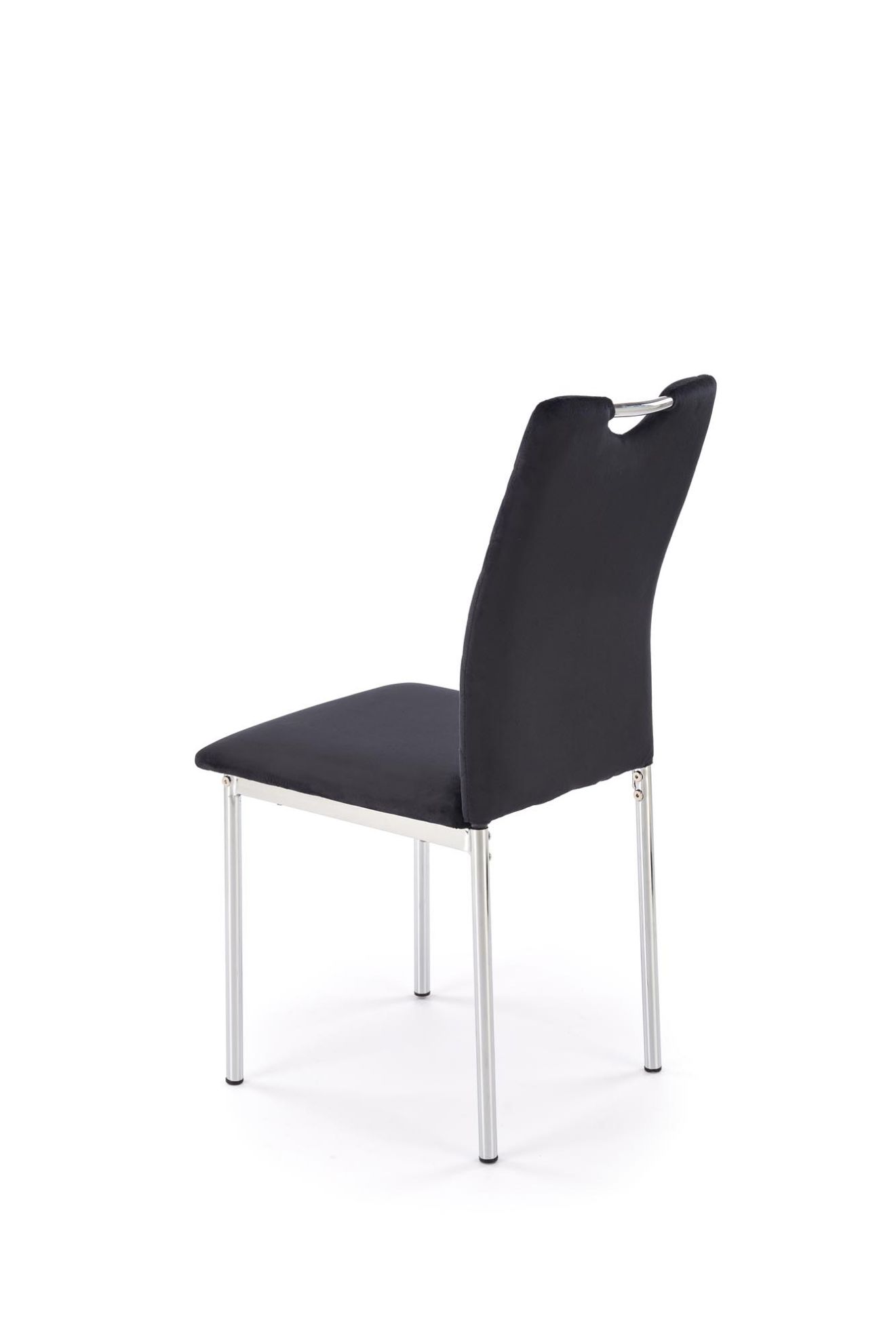 Siedzisko i oparcie krzesła 578 Calino pokryte są tkaniną velvet oraz velvet HLR w kolorze czarnym. Materiał jest miękki, przyjemny w dotyku i estetyczny, a jednocześnie odporny na codzienne użytkowanie. Czarna tapicerka nadaje krzesłu elegancki, klasyczny wygląd i doskonale komponuje się z chromowanym stelażem.