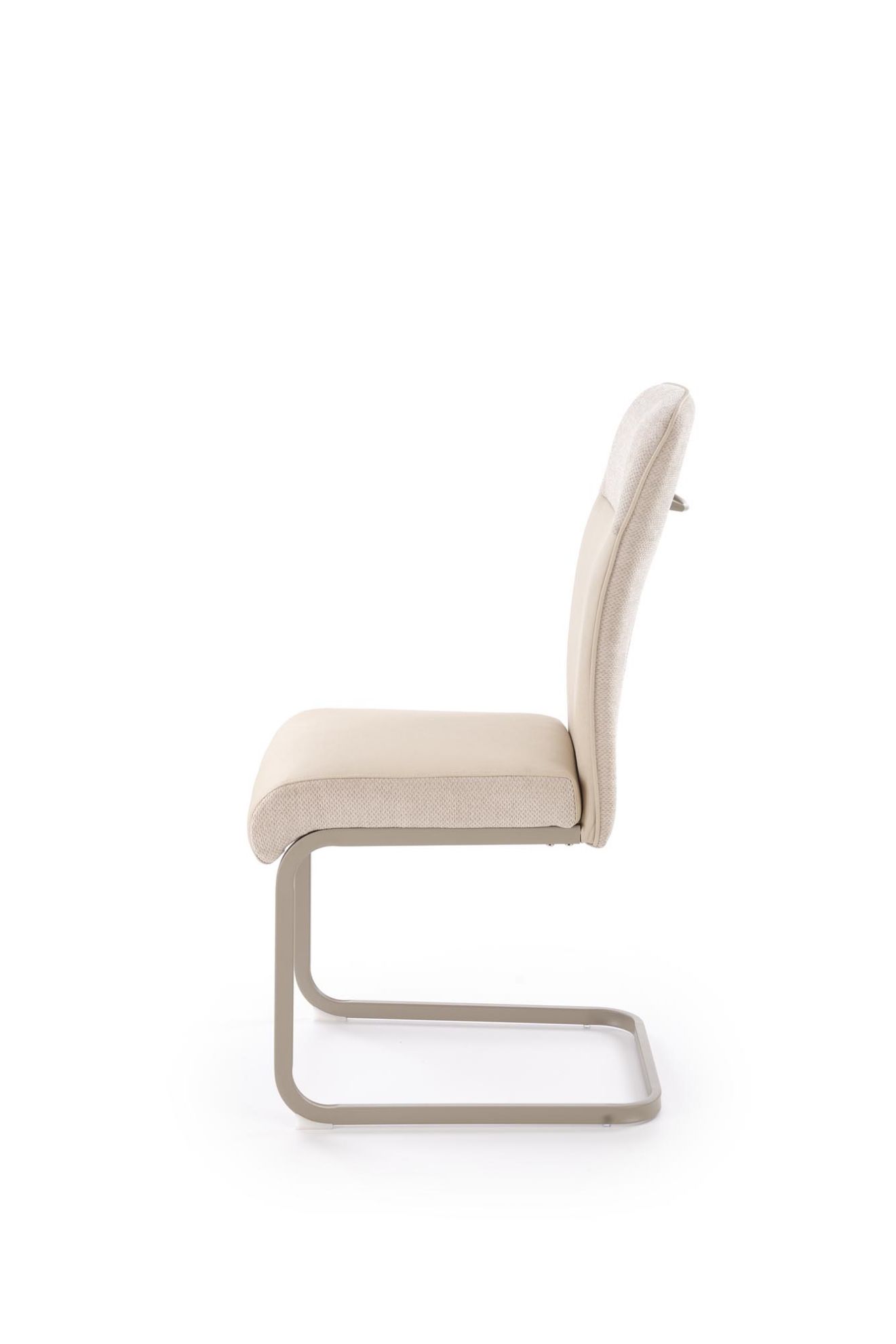 Krzesło 584 Vencio beżowy/kaszmir łączy nowoczesny design z komfortowym siedziskiem. Tapicerka z połączenia tkaniny i eco skóry zapewnia elegancki wygląd i łatwość w utrzymaniu czystości. Metalowy stelaż malowany proszkowo w kolorze kaszmir z płozami o prostokątnym przekroju gwarantuje stabilność i wytrzymałość, a minimalistyczny kształt pasuje do nowoczesnych wnętrz.
