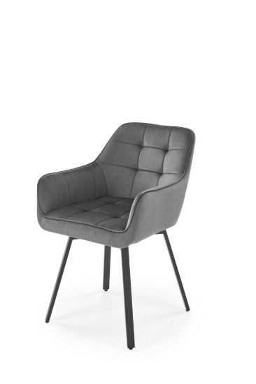 Krzesło 588 Noirel popielate łączy loftowy design z nowoczesną formą. Tapicerka z tkaniny velvet HLR jest miękka i przyjemna w dotyku, a czarny stelaż ze stali malowanej proszkowo zapewnia stabilność i wytrzymałość. Proste nogi o prostokątnym przekroju podkreślają minimalistyczny charakter, dzięki czemu krzesło sprawdzi się w jadalni, salonie lub biurze.