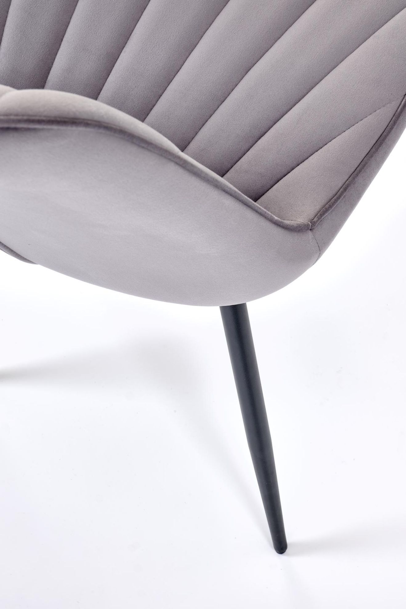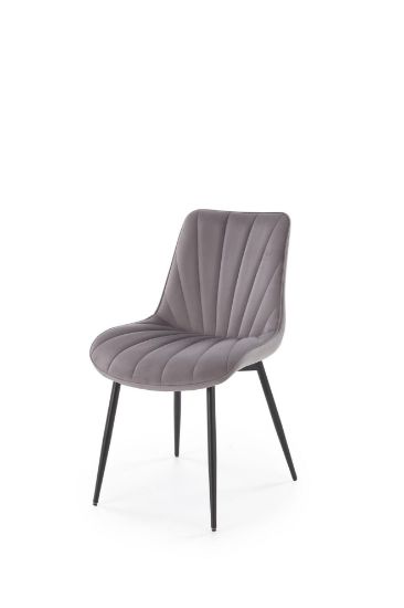 Krzesło 589 Azzera popielate łączy klasyczny styl z trwałą konstrukcją. Tapicerka z tkaniny velvet BLUVEL jest miękka i przyjemna w dotyku, a czarny stelaż ze stali malowanej proszkowo zapewnia stabilność i solidność. Proste nogi o okrągłym profilu podkreślają elegancki, ponadczasowy wygląd, dzięki czemu krzesło pasuje do jadalni, salonu i biura.