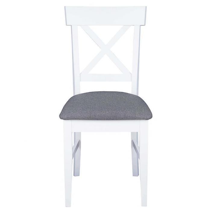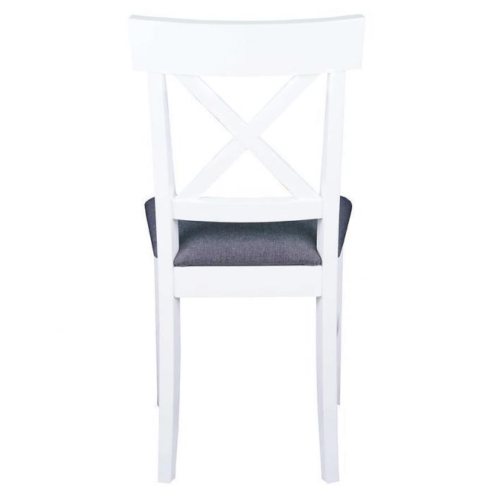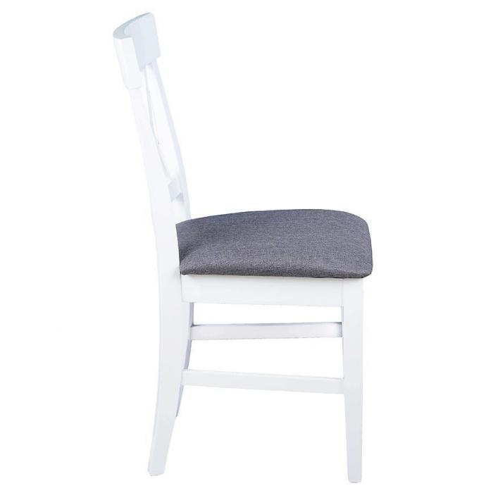 Krzesło, które idealnie wpasuje się w jadalnie, pokój dzienny lub inne pomieszczenie. Krzesło wniesie do wnętrza elegancję oraz ciekawy wygląd. Dzięki swojej kolorystyce skomponuje się z większością aranżacji. Siedzisko krzesła zostało pokryte tkaniną, natomiast wypełnienie pianką zapewni komfort użytkowania. Całość została umieszczona na stabilnym, drewnianym stelażu w kolorze bialym. Wysokość do siedziska 45 cm.