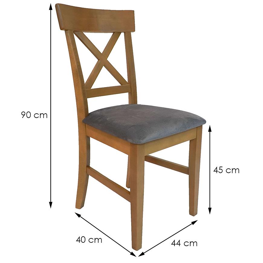 Całkowita wysokość krzesła wynosi 90 cm, a wysokość do siedziska to 45 cm, co zapewnia wygodne użytkowanie dla osób o różnym wzroście. Krzesło ma standardowe wymiary - 44 cm szerokości i 40 cm głębokości, co sprawia, że doskonale nadaje się do użytku w różnych przestrzeniach.