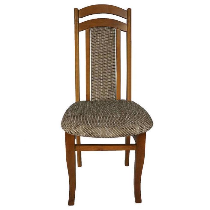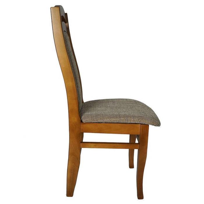 Krzesło tapicerowane, które idealnie wpasuje się w jadalnie, pokój dzienny lub inne pomieszczenie. Krzesło wniesie do wnętrza elegancję oraz ciekawy wygląd. Dzięki swojej kolorystyce skomponuje się z większością aranżacji. Siedzisko krzesła zostało pokryte tkaniną, natomiast wypełnienie pianką zapewni komfort użytkowania. Całość została umieszczona na stabilnym, drewnianym stelażu w kolorze brązowym. Wysokość do siedziska 47 cm.