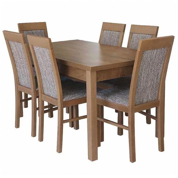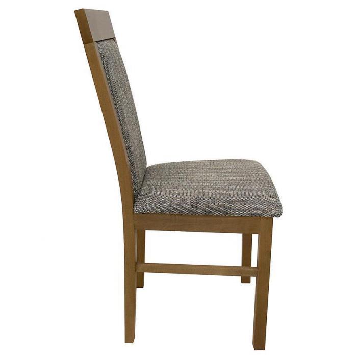Krzesło tapicerowane, które idealnie wpasuje się w jadalnie, pokój dzienny lub inne pomieszczenie. Krzesło wniesie do wnętrza elegancję oraz ciekawy wygląd. Dzięki swojej kolorystyce skomponuje się z większością aranżacji. Siedzisko krzesła zostało pokryte tkaniną, natomiast wypełnienie pianką zapewni komfort użytkowania. Całość została umieszczona na stabilnym, drewnianym stelażu w kolorze lefkas. Wysokość do siedziska 47 cm.