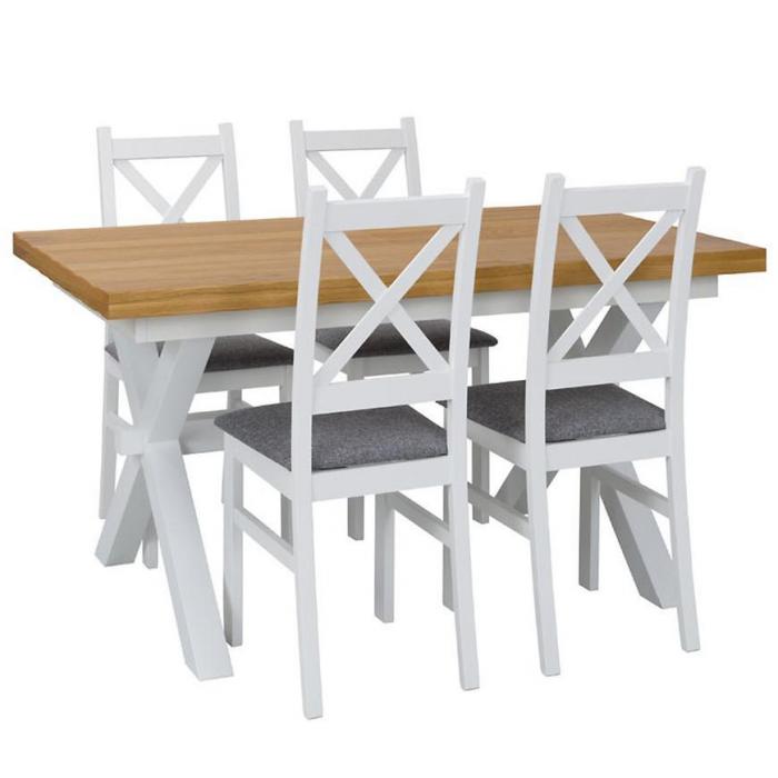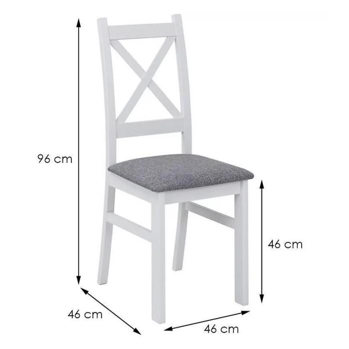 Drewniane krzesło Alina to mebel funkcjonalny. Klasyczny styl krzesła wpasuje się w niejedno wnętrze. Krzesło będzie pasowało do kuchni, jadalni, pokoju dziennego oraz innych pomieszczeń. Wykonane jest z drewna przez co jest mocne i stabilne. Siedzisko pokryte tkaniną w kolorze szarym i wypełnione pianką. Wysokość do siedziska wynosi 46 cm.