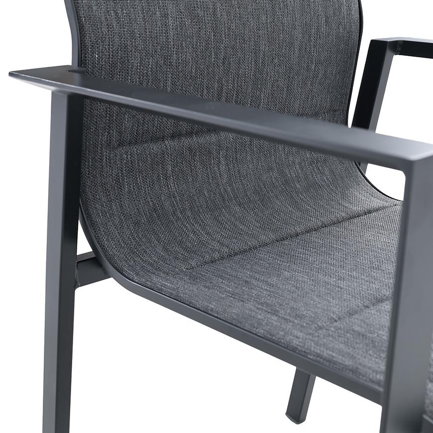 Krzesło Alva w kolorze szarym to wyrazista kombinacja elegancji, wygody i funkcjonalności. Wykonane z wysokiej jakości tekstylenu siedzisko i oparcie, wypełnione pianką, zapewniają niezrównany komfort podczas siedzenia, pozwalając Ci zrelaksować się i cieszyć się chwilą na świeżym powietrzu.