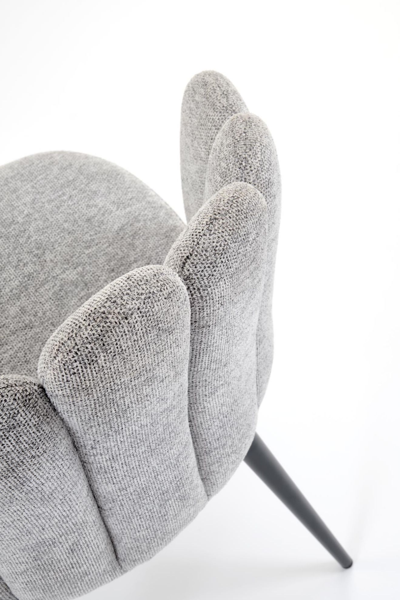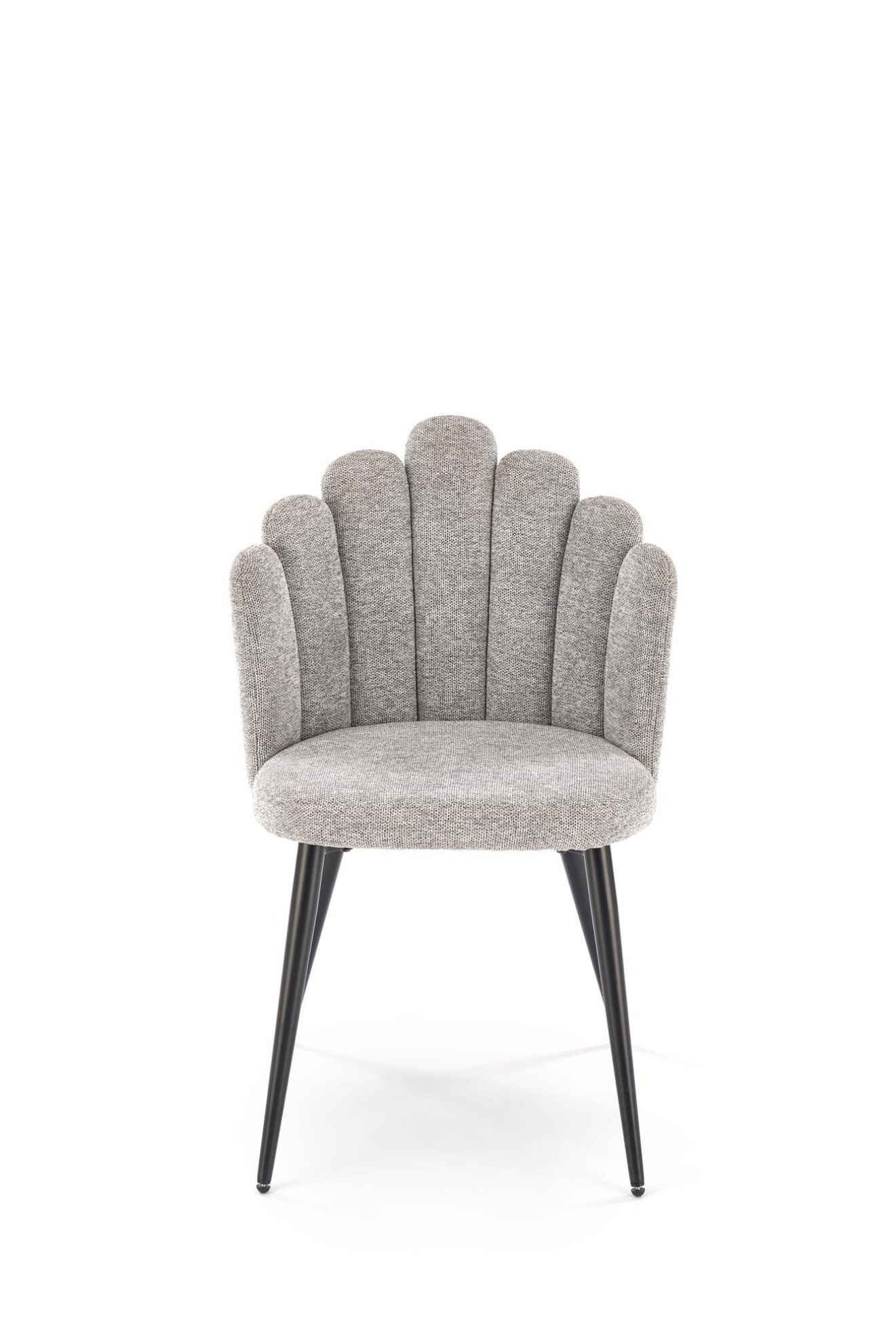 Obicie z tkaniny DIOSA#85 w popielatym kolorze nadaje krzesłu subtelnego, eleganckiego charakteru, który wpasuje się w różnorodne aranżacje wnętrz. Stalowe nogi malowane proszkowo gwarantują trwałość i stabilność, a ich matowe wykończenie idealnie komponuje się z nowoczesnym stylem krzesła.