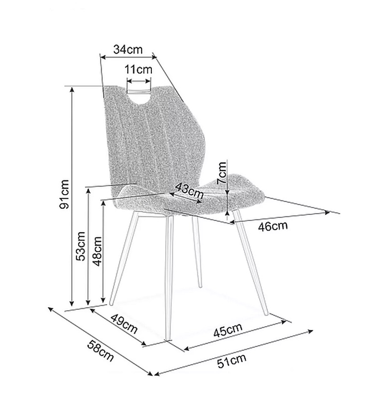 Stylowe krzesło Ariel sprawdzi się zarówno w jadalni, salonie, jak i biurze. Wzbogacone o czarny metalowy stelaż, który nie tylko dodaje mu nowoczesnego wyglądu, ale również zapewnia stabilność i trwałość, będzie się doskonale komponować z innymi meblami. Krzesło Ariel ma szlachetną formę, a jego design idealnie harmonizuje z wnętrzami w stylu loftowym, skandynawskim, jak i bardziej klasycznym.