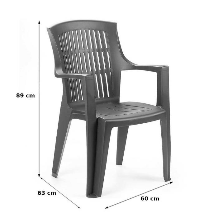 Krzesło świetnie sprawdzi się jako element wyposażenia ogrodu, balkonu, tarasu czy przestrzeni gastronomicznych. Wymiary 60 x 63 x 89 cm czynią je wygodnym i praktycznym nawet w niewielkich przestrzeniach. Lekka konstrukcja pozwala na łatwe przenoszenie krzesła w dowolne miejsce, a wytrzymały materiał gwarantuje długą żywotność.
