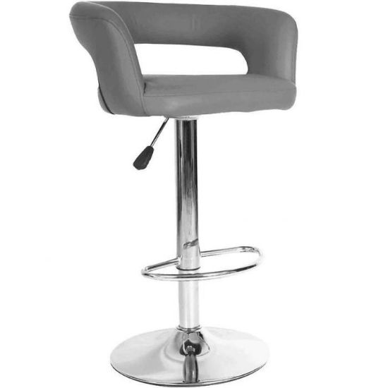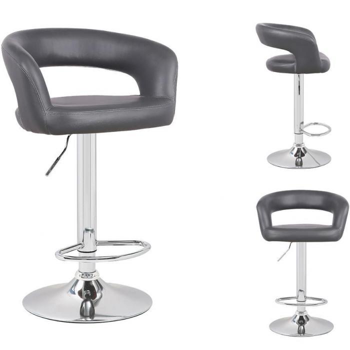 Krzesło barowe w kolorze szarym to doskonały wariant do salonu, jadalni, pokoju dziennego, gabinetu lub innego, dowolnego pomieszczenia. Głównymi zaletami krzesła są funkcjonalność, wygoda oraz ponadczasowy design. Posiada wysokość regulacji 79-99 cm oraz wygodny podnóżek. Krzesło posiada wymiary 50x55x79-99 cm. Chromowana podstawa ma 38.5 cm, a gazowy siłownik 33 cm.