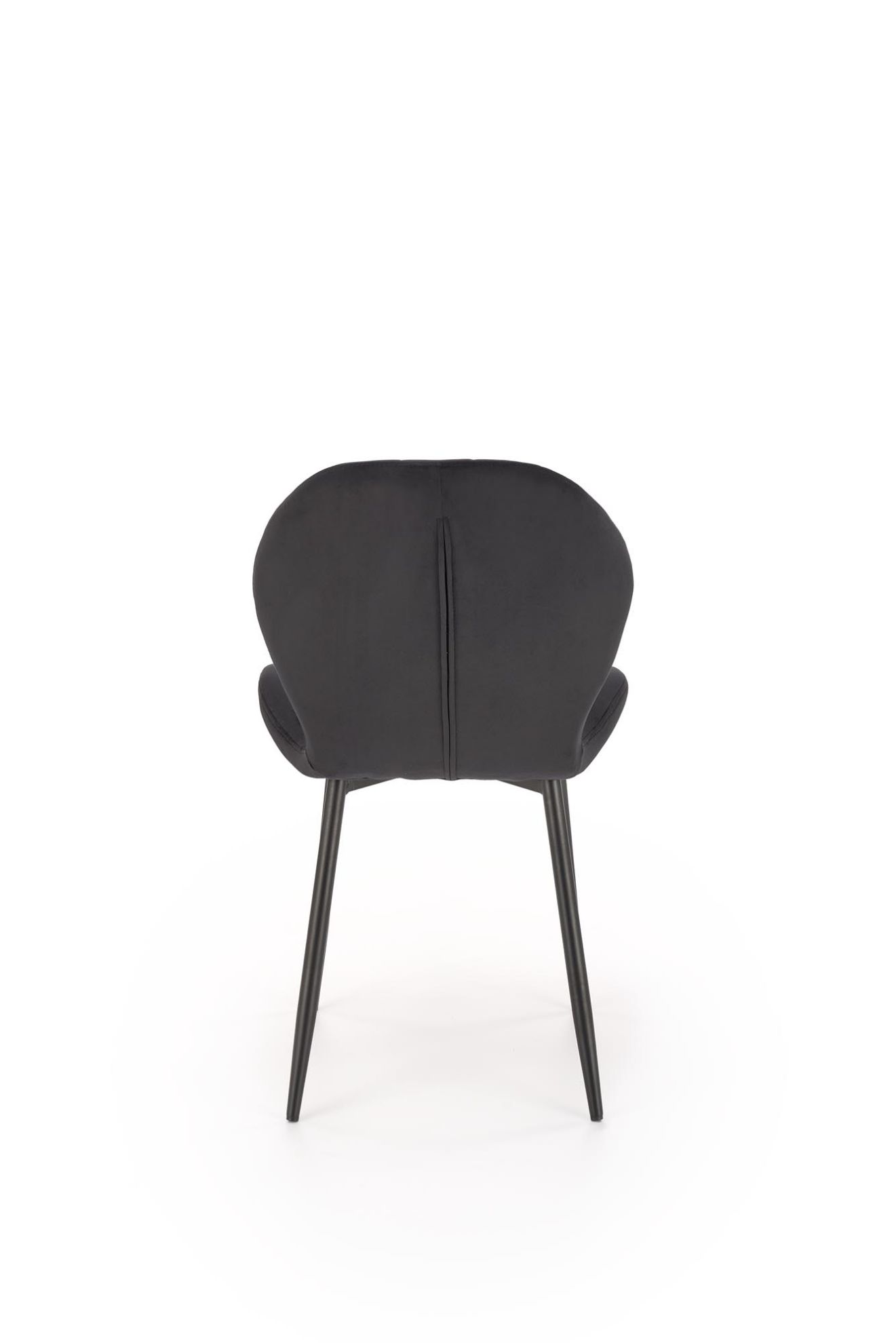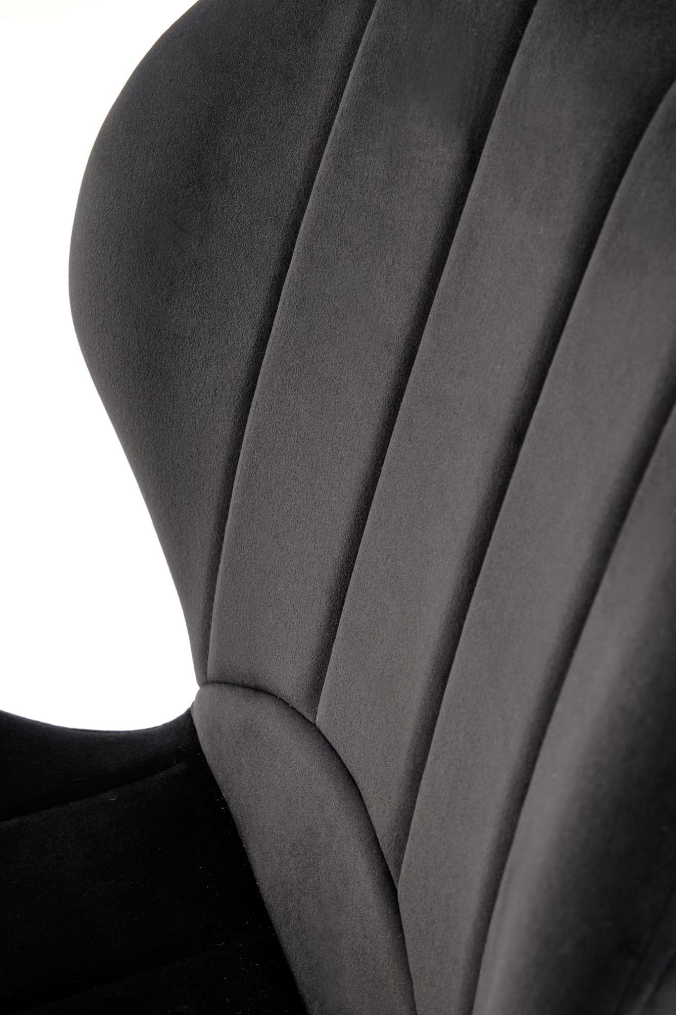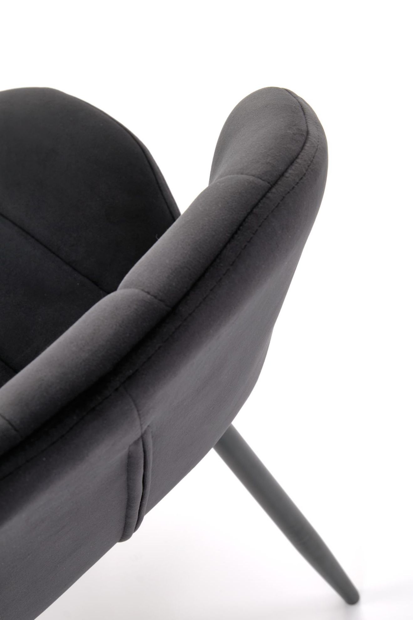 Siedzisko i oparcie pokryte są miękką, przyjemną w dotyku tkaniną velvet BLUVEL#19 w subtelnym, czarnym kolorze, który dodaje wnętrzu ciepła i elegancji. Stalowe nogi malowane proszkowo zapewniają stabilność i trwałość, a jednocześnie dzięki matowemu wykończeniu idealnie komponują się z welurową tkaniną.