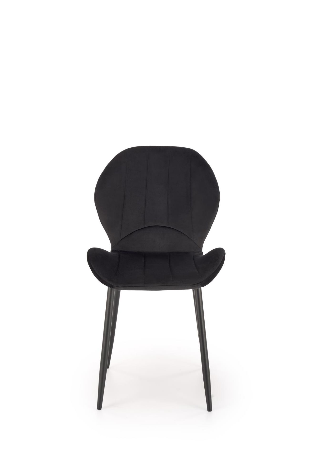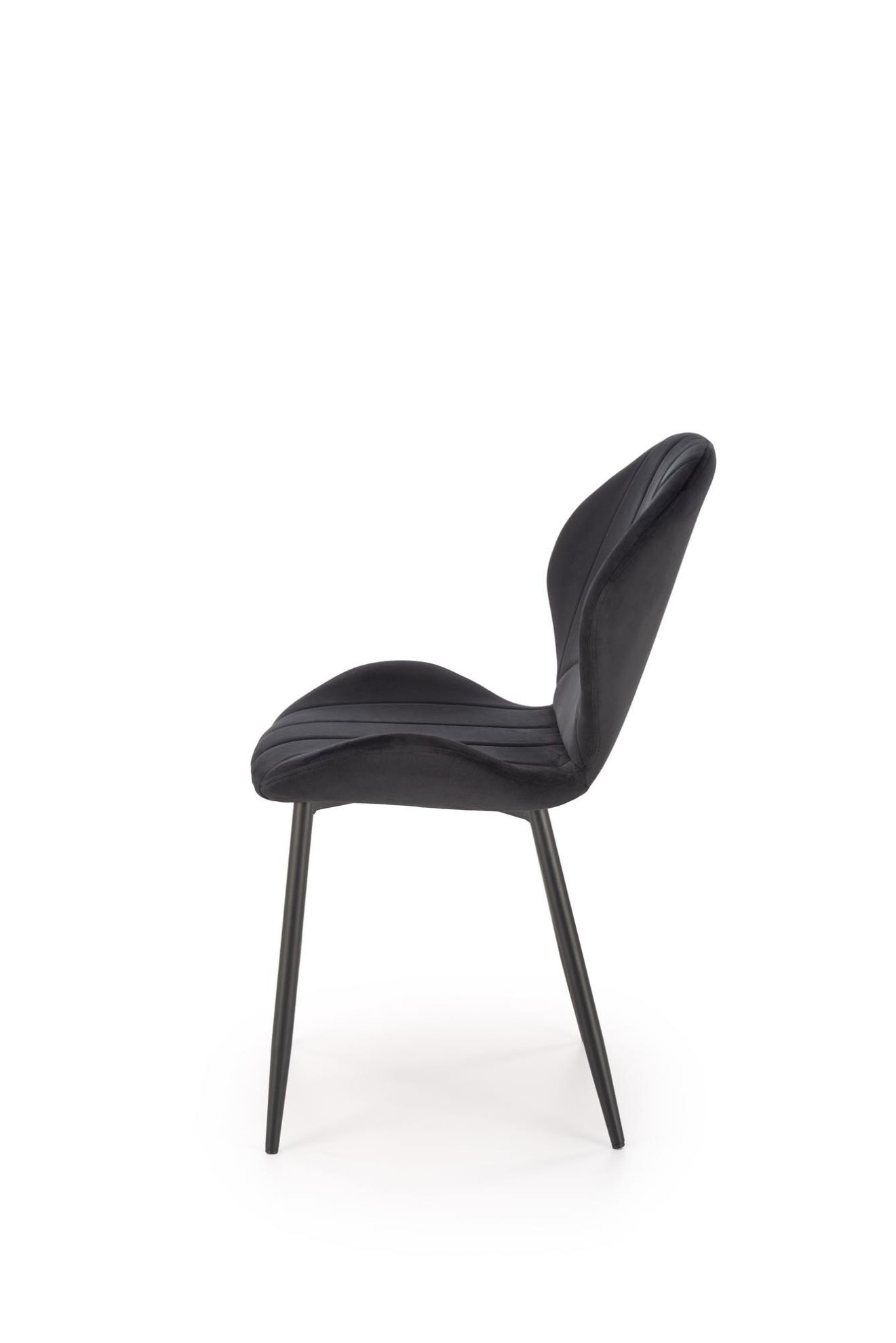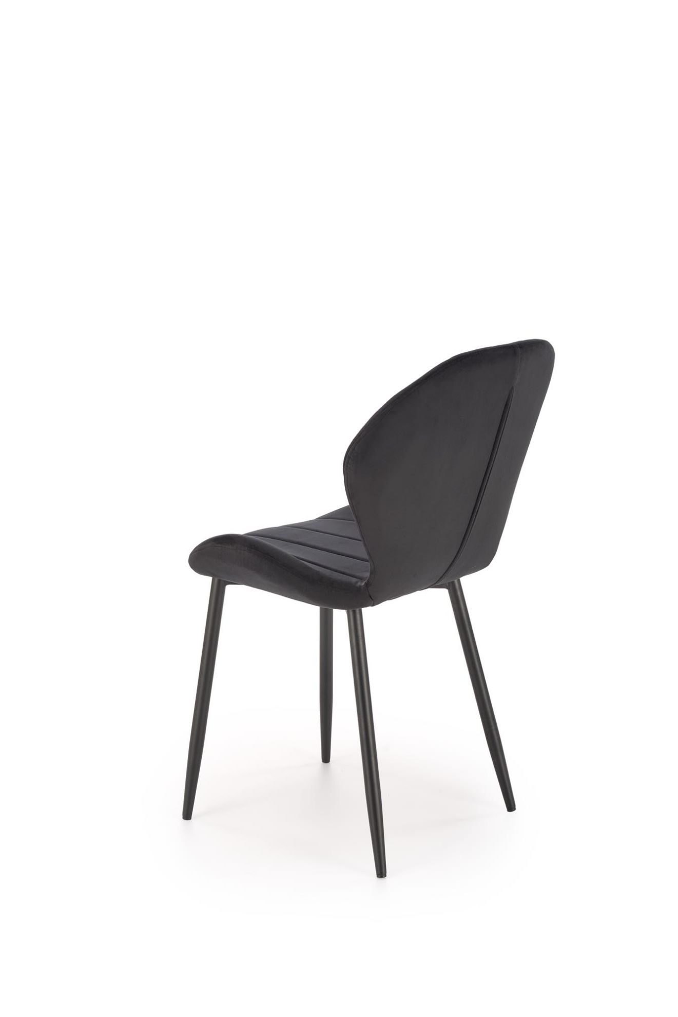 Siedzisko i oparcie pokryte są miękką, przyjemną w dotyku tkaniną velvet BLUVEL#19 w subtelnym, czarnym kolorze, który dodaje wnętrzu ciepła i elegancji. Stalowe nogi malowane proszkowo zapewniają stabilność i trwałość, a jednocześnie dzięki matowemu wykończeniu idealnie komponują się z welurową tkaniną.