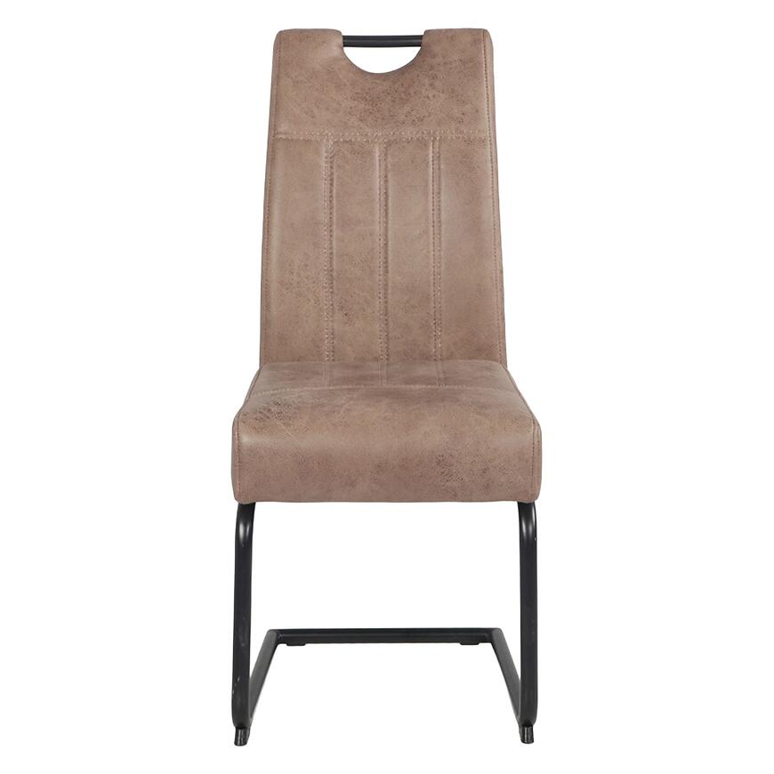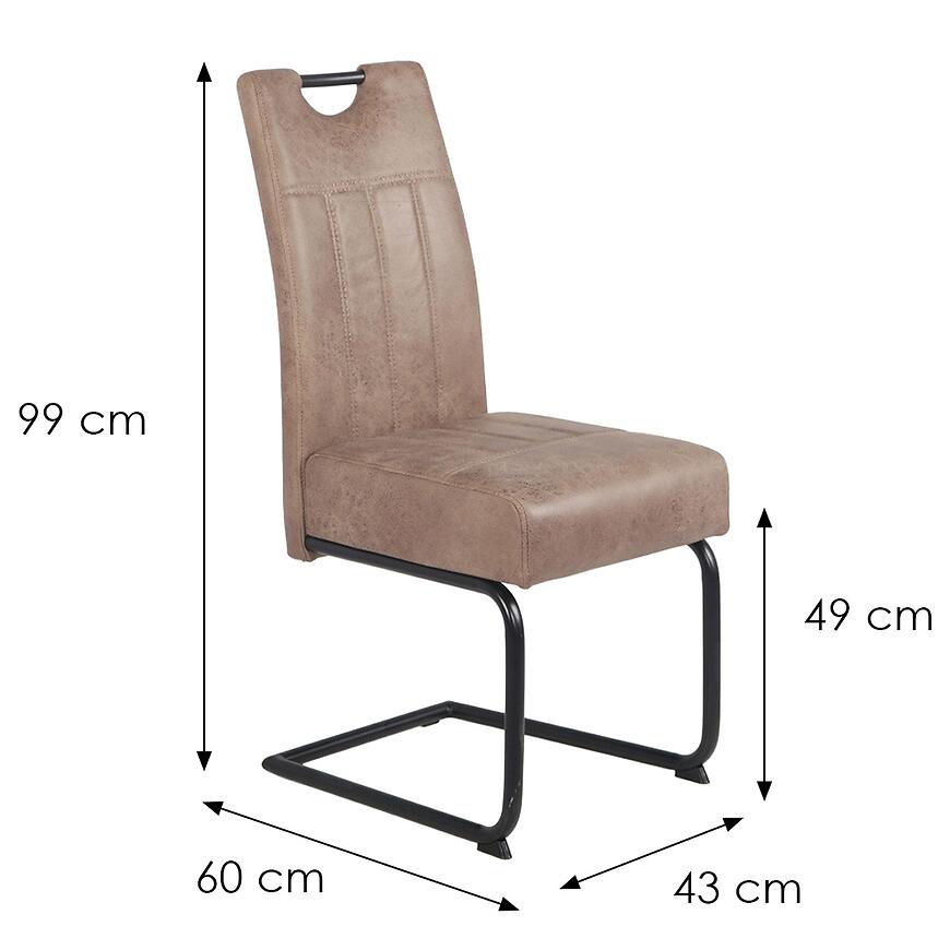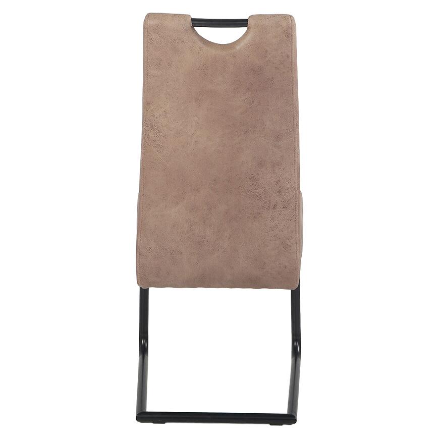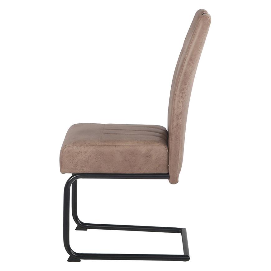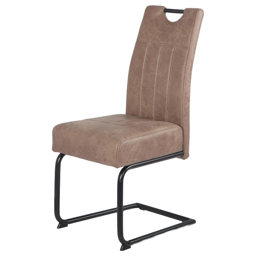 Solidny metalowy stelaż w kolorze czarnym zapewnia stabilność i długowieczność krzesła. Połączenie metalu z wytrzymałą ekoskórą w kolorze brązowym nadaje meblowi elegancki, klasyczny charakter, który pasuje do różnych aranżacji wnętrz.