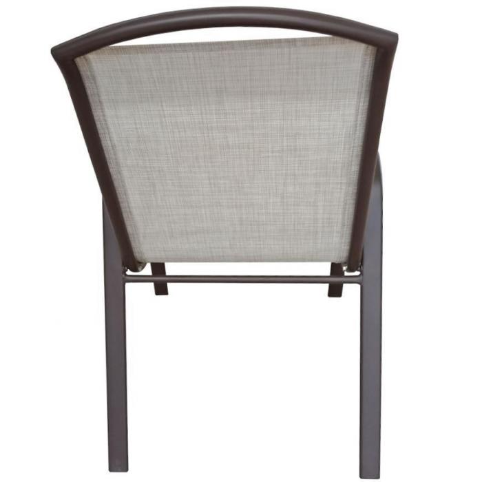 Krzesło nadaje się do wewnątrz jak i na zewnątrz do ogrodu czy na taras. Tekstylniany materiał, z kórego zostało wykonane krzesło jest bardzo wytrzymała, jednocześnie dająca komfort podczas użytkowania. Rama wykonana jest z metalu pomalowanej proszkowo, wiec łatwo utrzymać je w czystości.