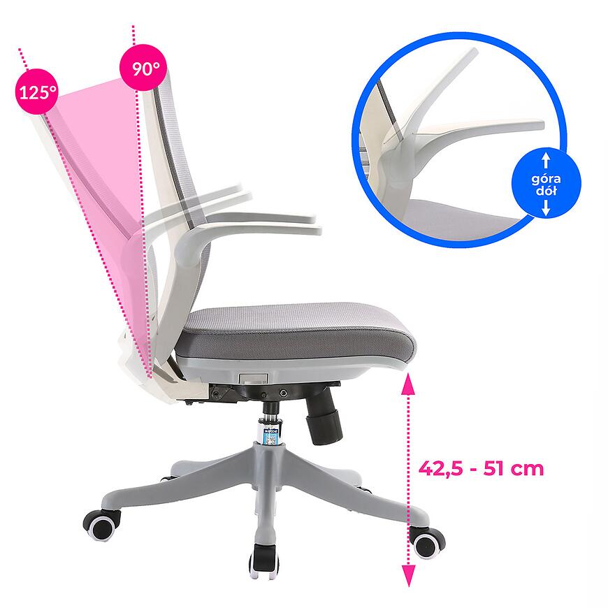 Krzesło Angel Orion Szary to idealne połączenie komfortu, funkcjonalności i nowoczesnego stylu. Wyposażone w miękkie siedzisko wypełnione gąbką oraz solidną konstrukcję z tkaniny i plastiku, zapewnia wygodę i trwałość użytkowania. Regulowane podłokietniki i oparcie pozwalają dopasować ustawienia do indywidualnych potrzeb, a maksymalne obciążenie 150 kg gwarantuje bezpieczeństwo. Szary kolor nadaje krzesłu ponadczasowy charakter i subtelną elegancję, dzięki czemu harmonijnie komponuje się w każdej przestrzeni, łącząc praktyczność, komfort i estetykę w jednym meblu.