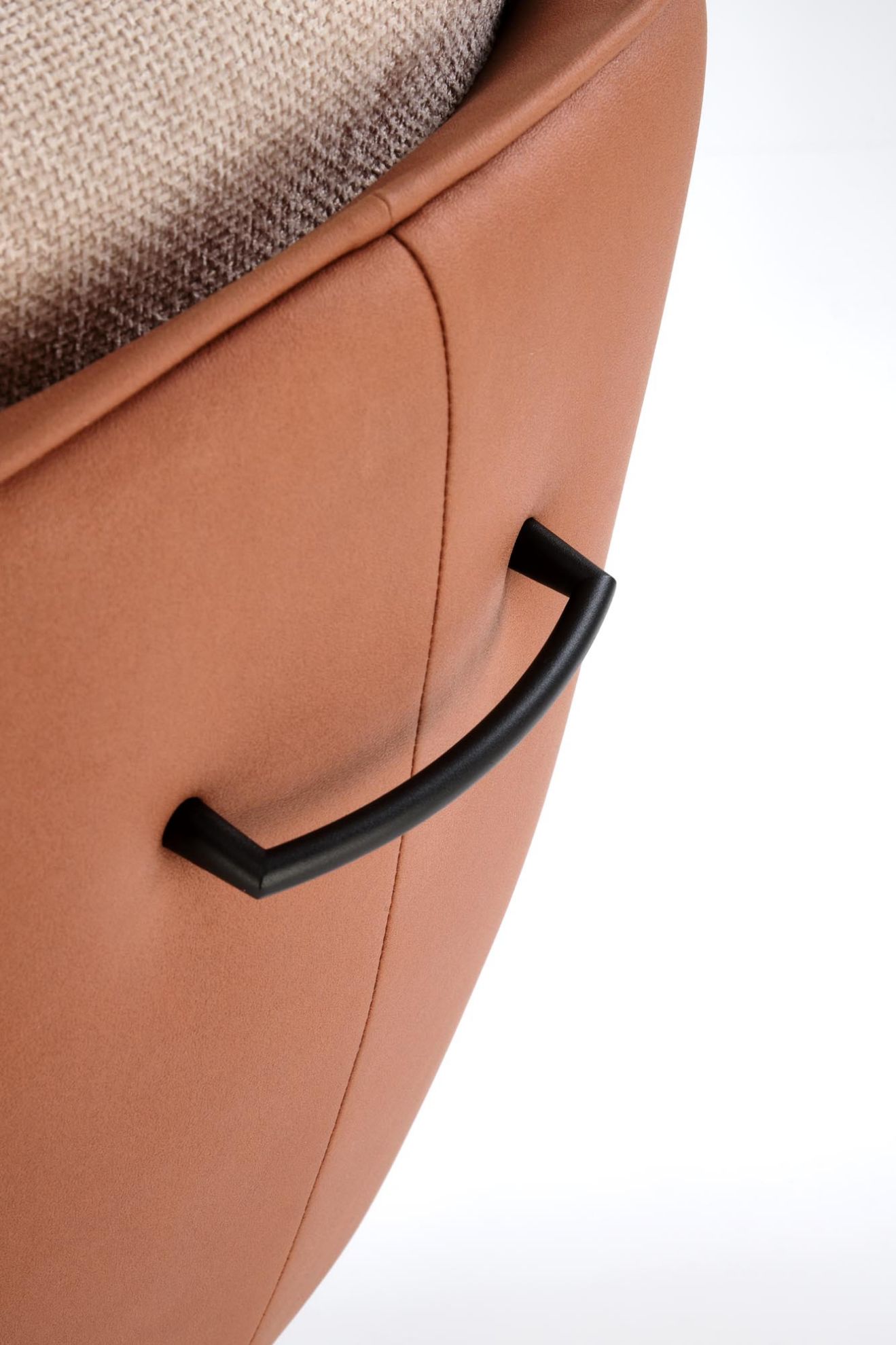 Krzesło jest wykonane z wysokiej jakości materiałów: siedzisko i oparcie pokryte są wytrzymałą tkaniną w kolorze beżowym i ekoskórą w kolorze brązowym, co zapewnia komfort użytkowania. Nogi krzesła są wykonane ze stali malowanej proszkowo, co dodaje nowoczesnego wyglądu i zapewnia solidność konstrukcji.