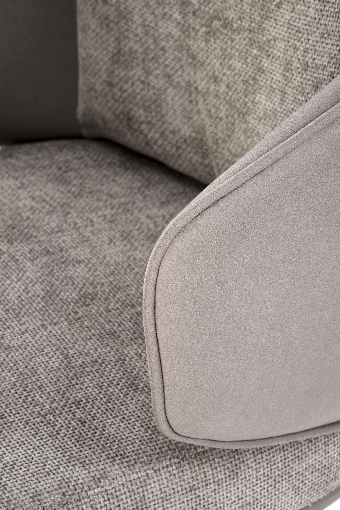 Krzesło jest wykonane z wysokiej jakości materiałów: siedzisko i oparcie pokryte są wytrzymałą tkaniną i ekoskórą w kolorze popielatym, co zapewnia komfort użytkowania. Nogi krzesła są wykonane ze stali malowanej proszkowo, co dodaje nowoczesnego wyglądu i zapewnia solidność konstrukcji.