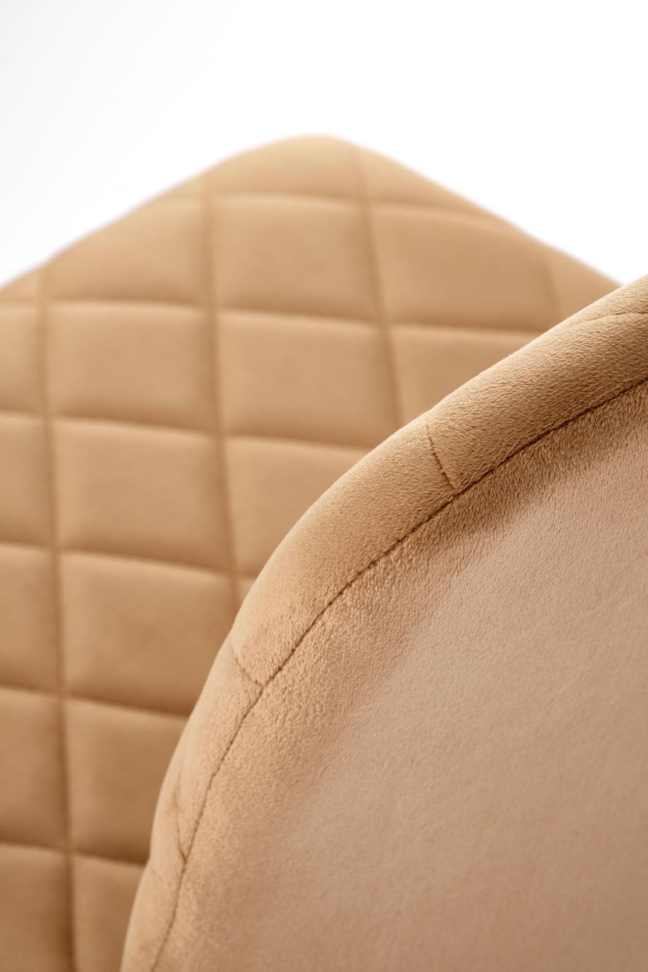 Siedzisko i oparcie krzesła wykonane są z miękkiej i przyjemnej w dotyku tkaniny velvet w eleganckim beżowym kolorze, co nadaje mu luksusowy wygląd i sprawia, że idealnie komponuje się z różnymi stylami aranżacyjnymi. Stabilna konstrukcja krzesła opiera się na nogach wykonanych ze stali malowanej proszkowo, co gwarantuje trwałość i nowoczesny wygląd.