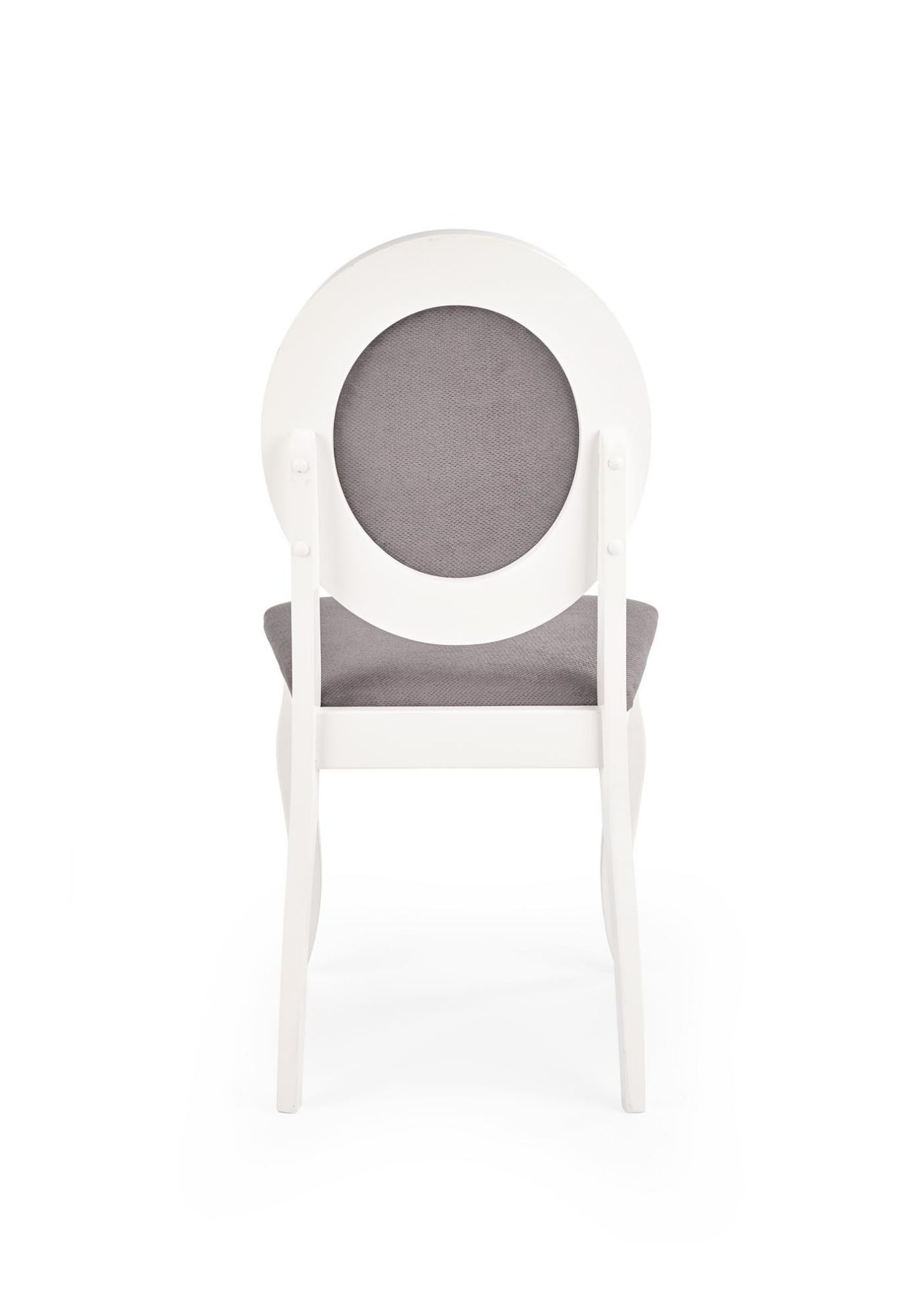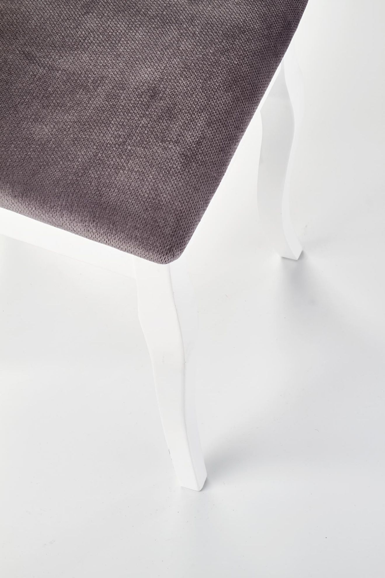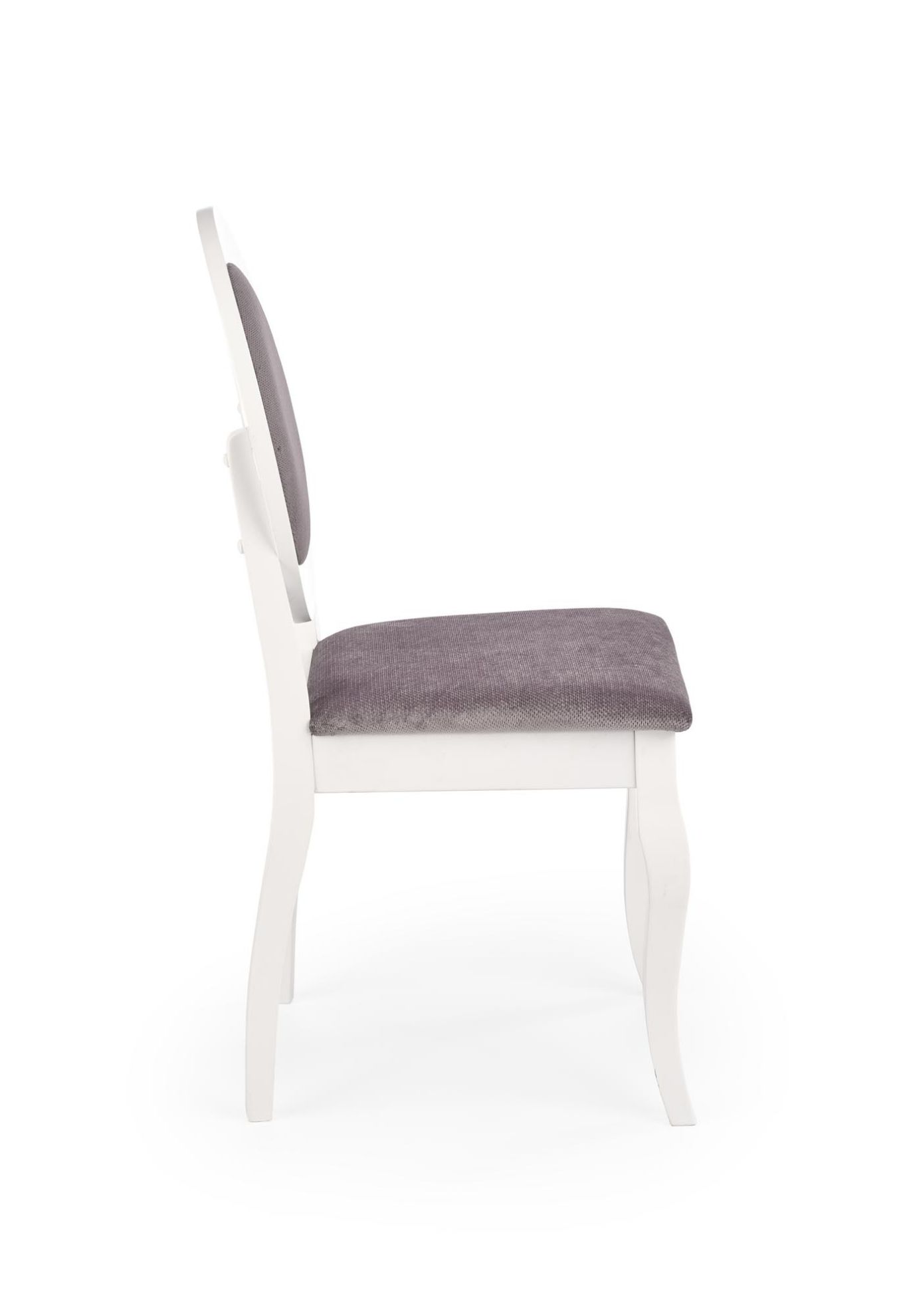 Krzesło Bork to połączenie klasycznej elegancji i funkcjonalności. Wykonane z wysokiej jakości litego drewna kauczukowego oraz obite przyjemną w dotyku tkaniną w kolorze popielatym, stanowi idealne uzupełnienie jadalni, salonu czy kuchni. Stabilna konstrukcja w kolorze białym wprowadza świeżość i lekkość do każdego wnętrza.