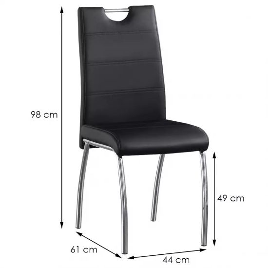 Krzesło Buenos to mebel funkcjonalny. Klasyczny styl krzesła wpasuje się w niejedno wnętrze. Krzesło będzie pasowało do kuchni, jadalni, pokoju dziennego oraz innych pomieszczeń. Nogi zostały wykonane z metalu, a całość pokryta ekoskórą w kolorze czarnym. Wysokość do siedziska wynosi 49 cm.