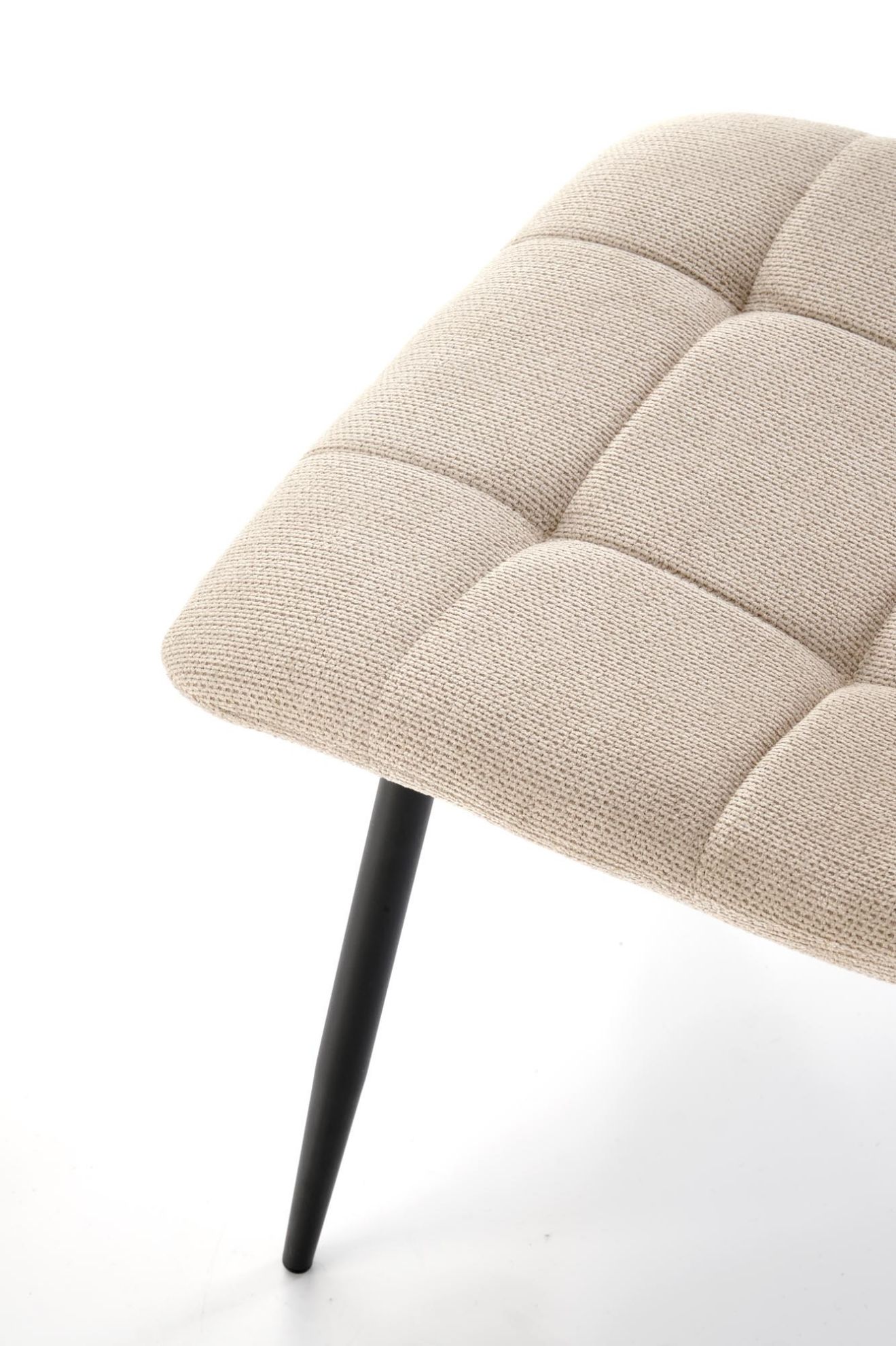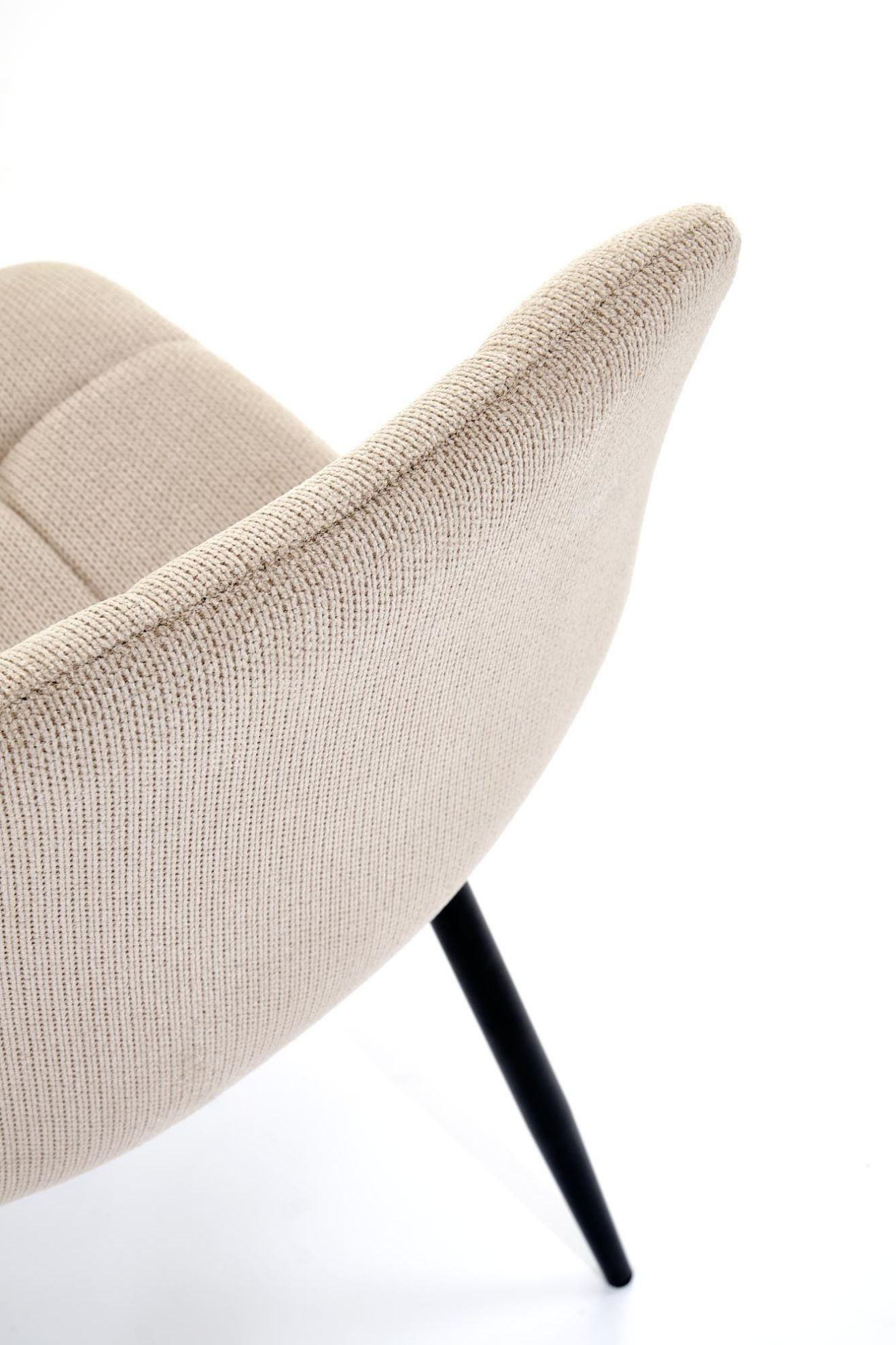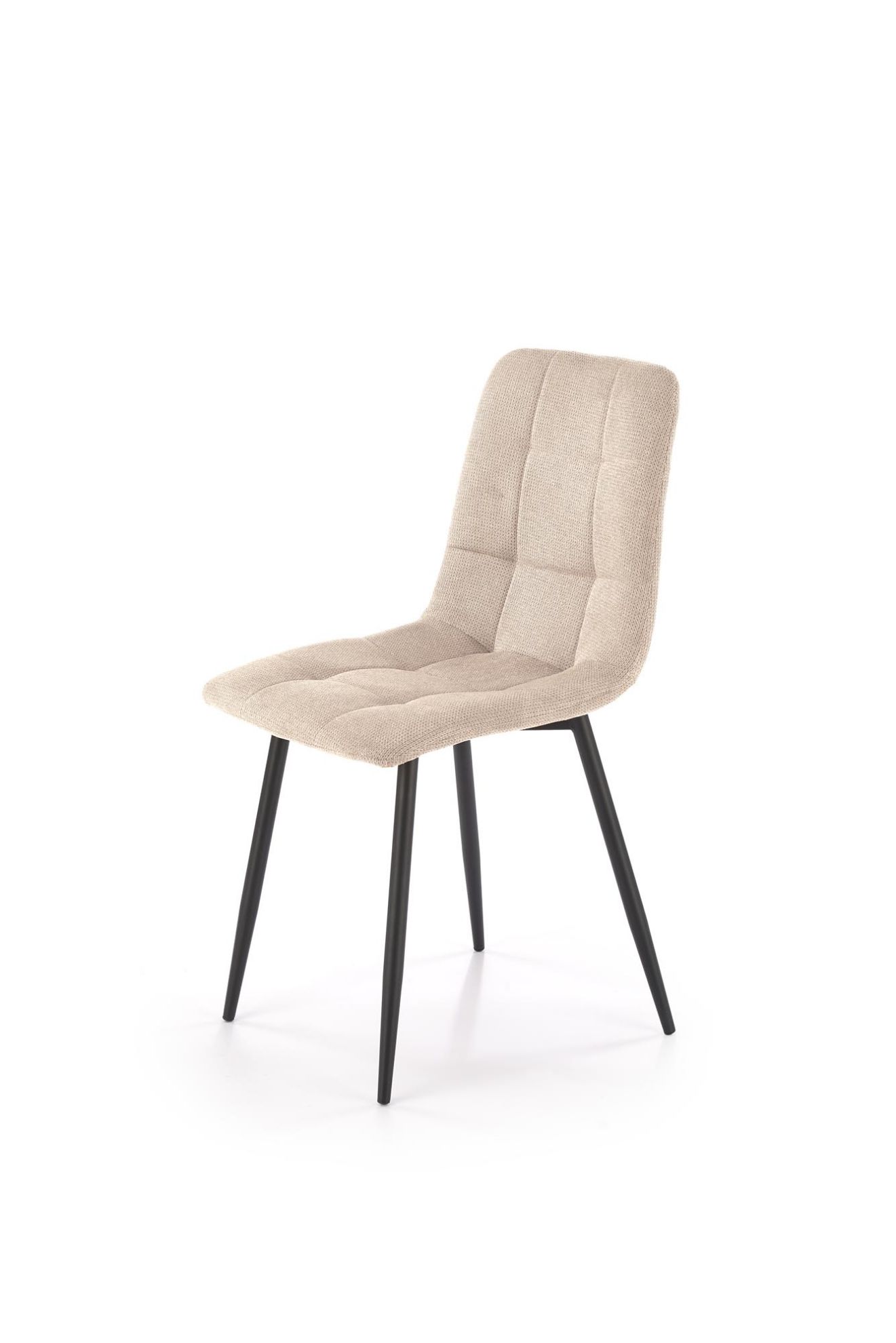 Obite miękką tkaniną w stylowym beżowym kolorze, krzesło emanuje subtelną elegancją, która wprowadza do wnętrza ciepło i przytulność. Stalowe nogi malowane proszkowo zapewniają trwałość i stabilność, a ich nowoczesne wykończenie idealnie komponuje się z tkaniną, tworząc harmonijną całość.
