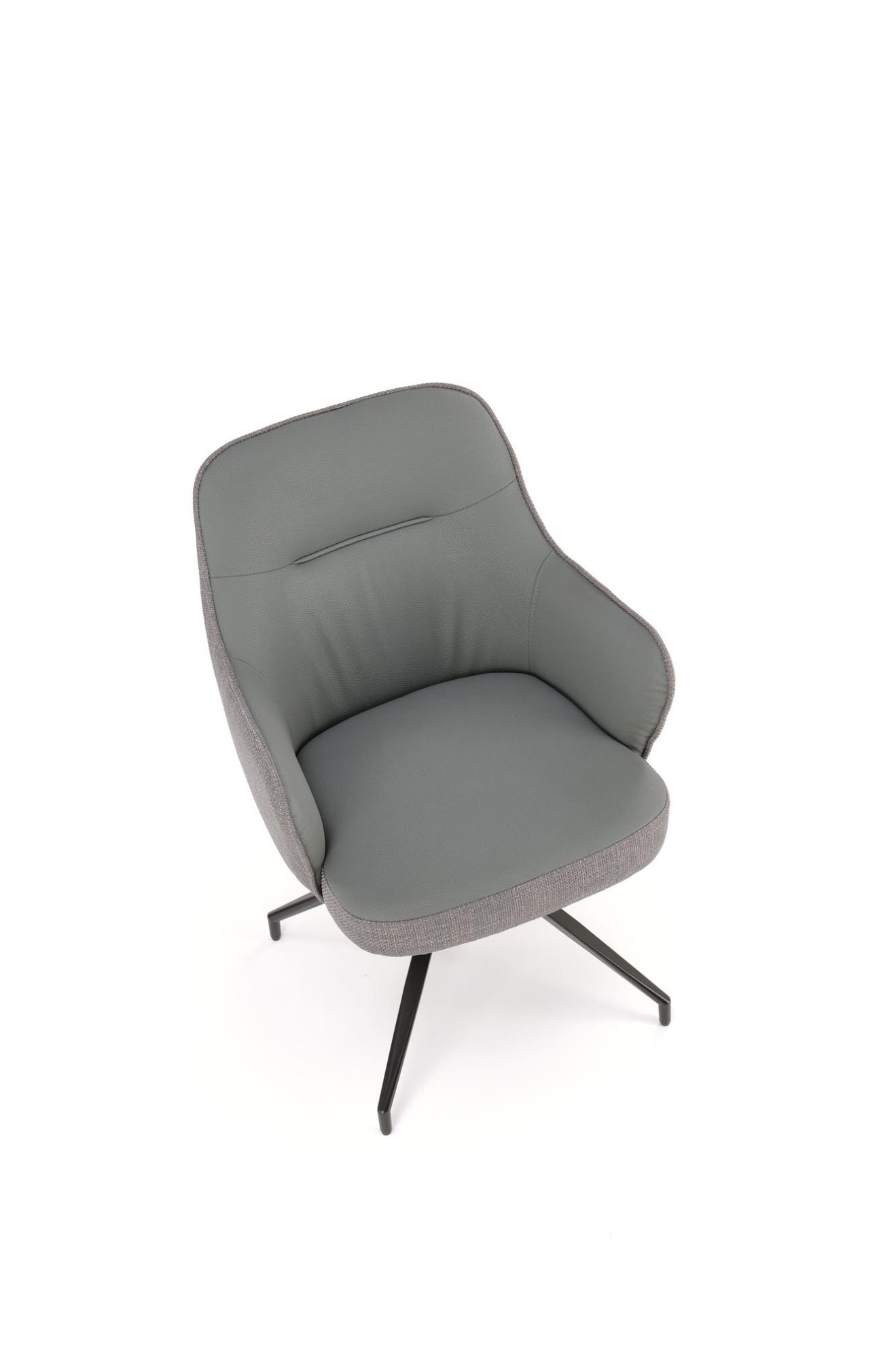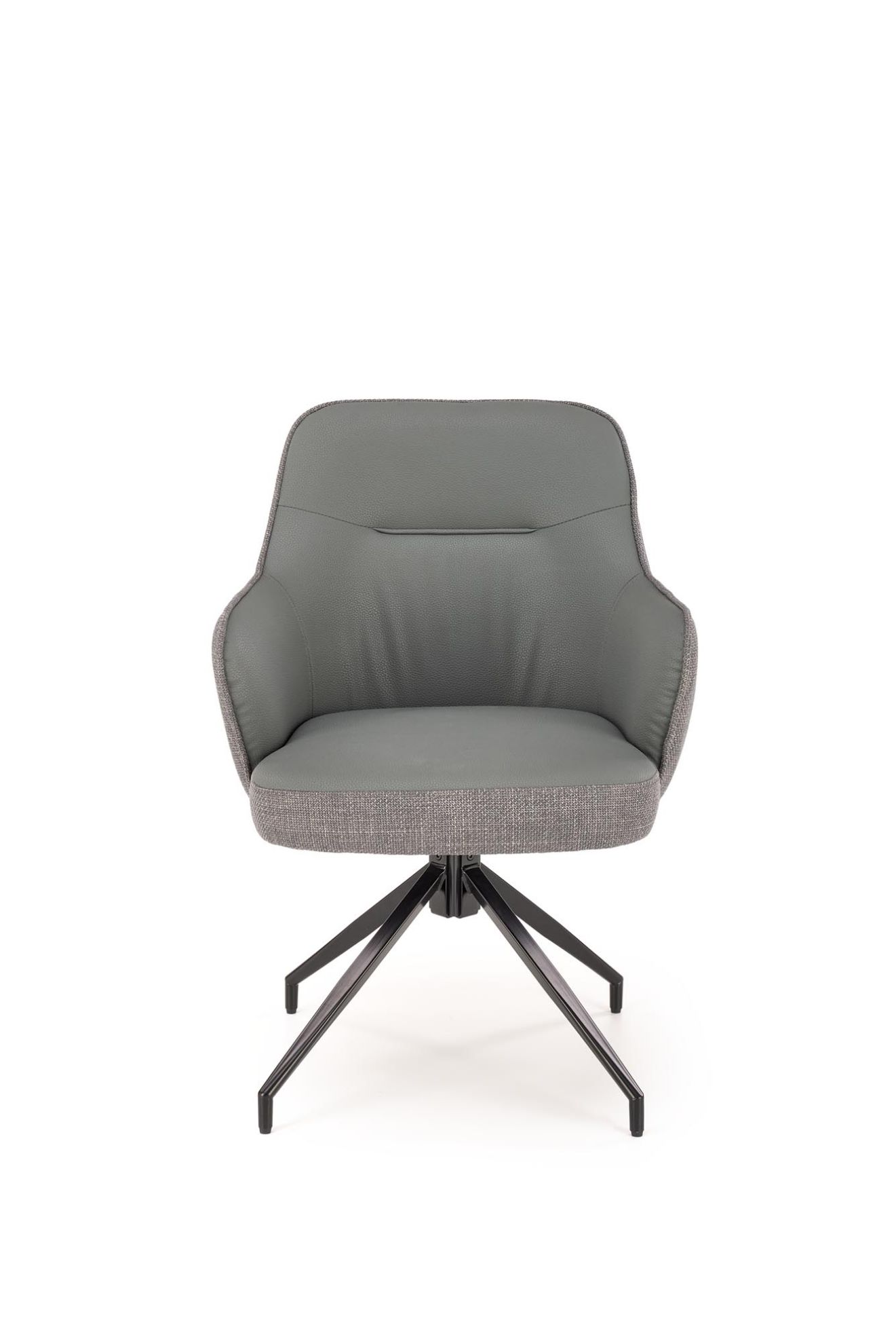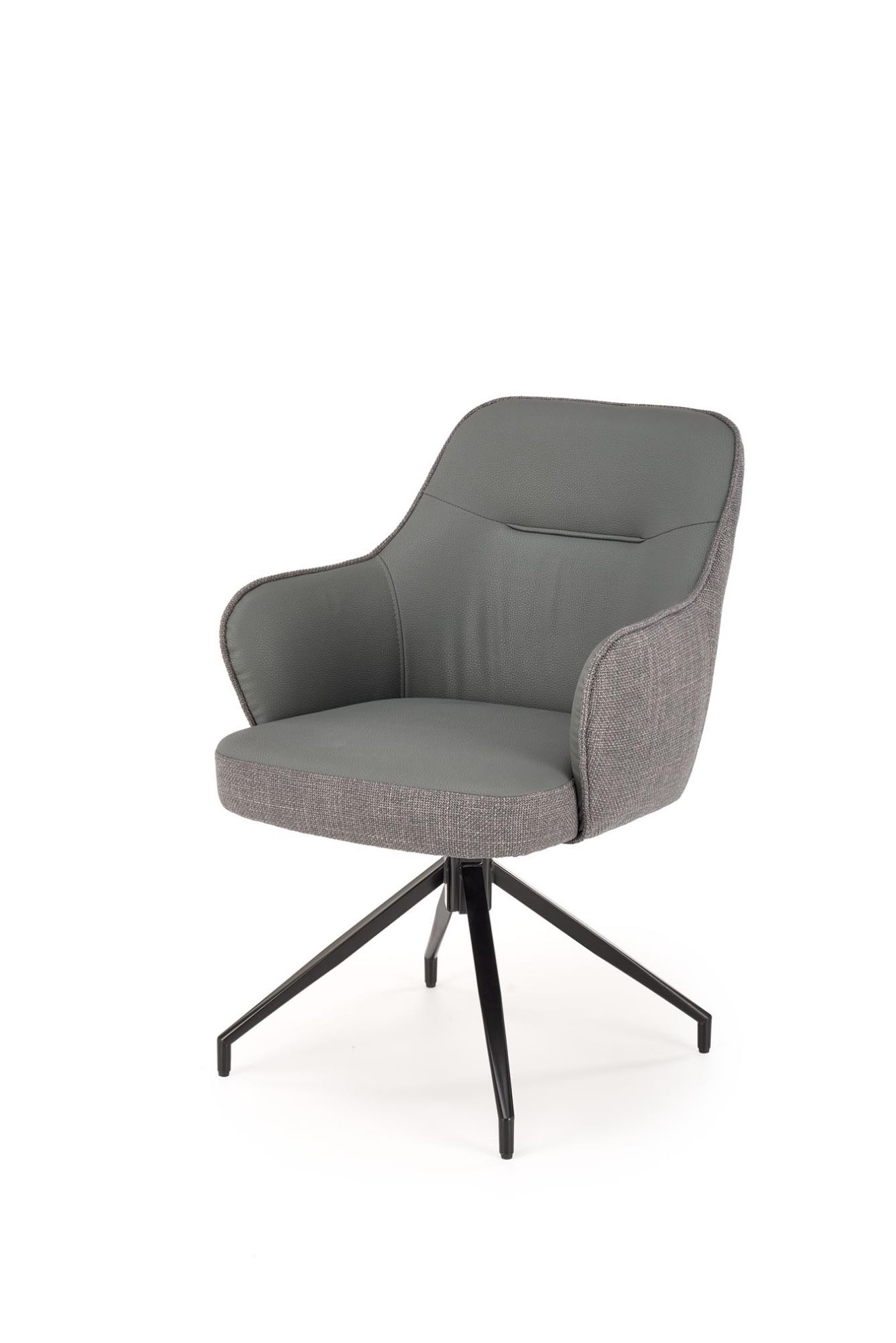 Krzesło jest wykonane z wysokiej jakości materiałów: siedzisko i oparcie pokryte są wytrzymałą tkaniną i ecoskórą w kolorze popielatym, co zapewnia komfort użytkowania i łatwość w utrzymaniu czystości. Nogi krzesła są wykonane ze stali malowanej proszkowo, co dodaje nowoczesnego wyglądu i zapewnia solidność konstrukcji.