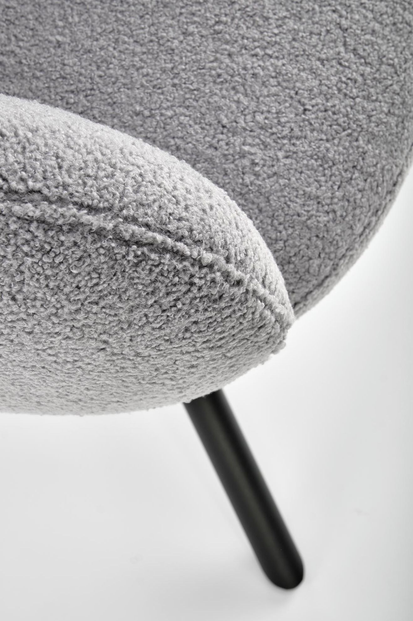 Siedzisko i oparcie tego krzesła zostały wyściełane miękką tkaniną boucle o przyjemnym, popielatym kolorze. Tkanina boucle jest nie tylko estetyczna, ale także zapewnia doskonałą wygodę podczas siedzenia. To krzesło jest doskonałym miejscem do relaksu po długim dniu.