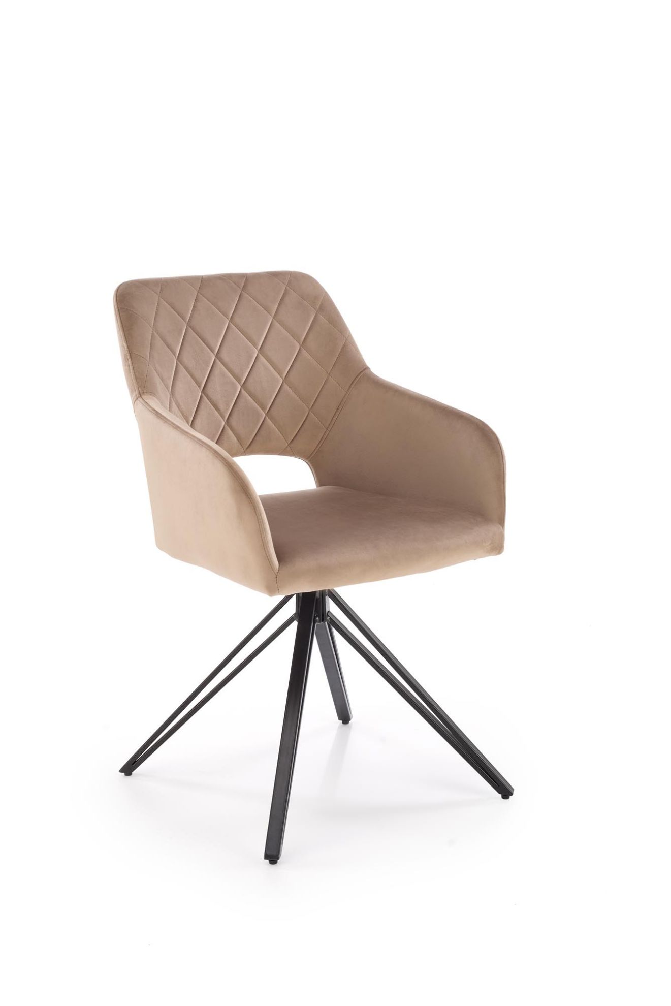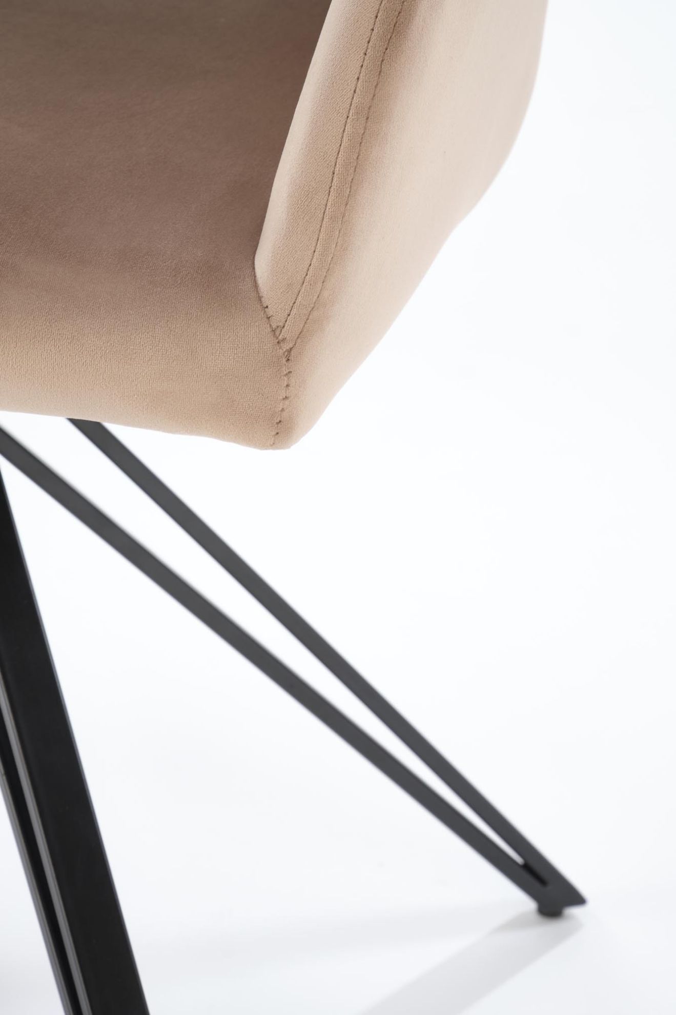 Krzesło jest wykonane z wysokiej jakości materiałów: siedzisko i oparcie pokryte są wytrzymałą tkaniną velvet (BLUVEL#40) w kolorze beżowym, co zapewnia komfort użytkowania. Nogi krzesła są wykonane ze stali malowanej proszkowo, co dodaje nowoczesnego wyglądu i zapewnia solidność konstrukcji.