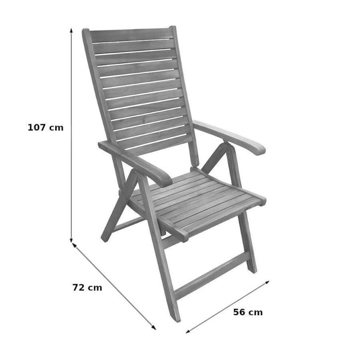 Krzesło wykonano z wysokiej jakości drewna odpornego na warunki atmosferyczne, uszkodzenia mechaniczne i odkształcenia. Solidna drewniana rama gwarantuje stabilność i wytrzymałość, a konstrukcja umożliwia obciążenie do 150 kg. Krzesło jest składane, co ułatwia jego przechowywanie poza sezonem i transport.