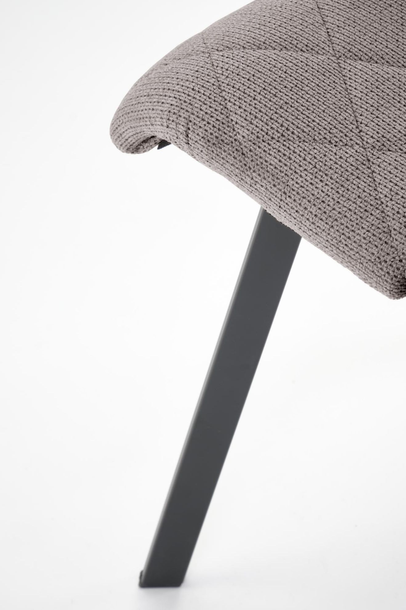 Siedzisko krzesła pokryte jest tkaniną VARDO#11 w eleganckim popielatym kolorze, która nadaje mu nowoczesnego wyglądu i wprowadza subtelny akcent do wnętrza. Stalowe nogi malowane proszkowo gwarantują stabilność i trwałość, a ich minimalistyczny design świetnie komponuje się z tapicerką.