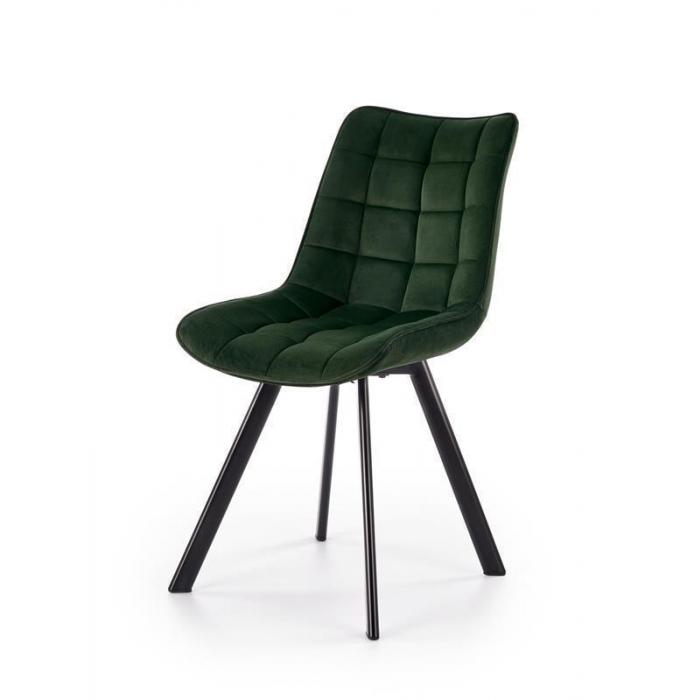 Krzesło tapicerowany przyjemną w dotyku tkaniną Velvet. Na siedzisku i oparciu zastosowano ozdobne przeszycia, które nadają modelowi eleganckiego wyglądu. Nogi krzesła są odpowiednio wyprofilowane, co powoduje stabilną i solidną konstrukcję, która nie przechyli się i nie przewróci. Nogi wykonano z metalu malowanego na czarno metodą proszkową, dzięki temu są odpowiednio zabezpieczone przed korozją i odporne na uszkodzenia.