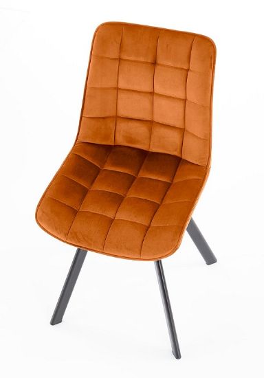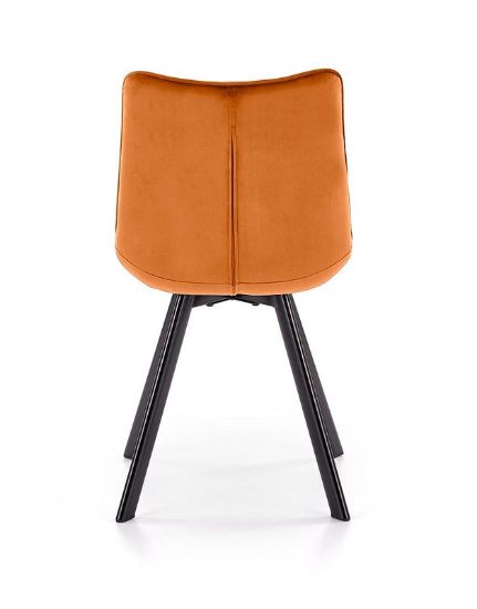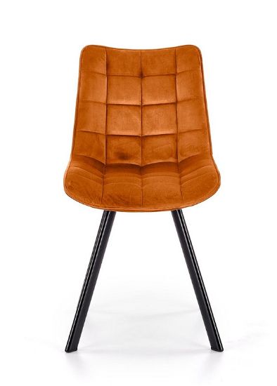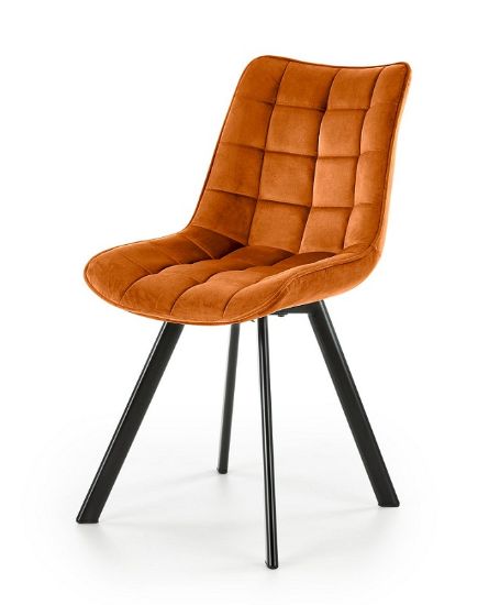 Krzesło Enzo tapicerowane przyjemną w dotyku tkaniną Velvet w kolorze cynamonowym. Na siedzisku i oparciu zastosowano ozdobne przeszycia które nadają modelowi eleganckiego wyglądu. Nogi krzesła są odpowiednio wyprofilowane, co powoduje stabilną i solidną konstrukcję. Nogi wykonano z metalu malowanego na czarno metodą proszkową, dzięki temu są odpowiednio zabezpieczone przed korozją i odporne na uszkodzenia.