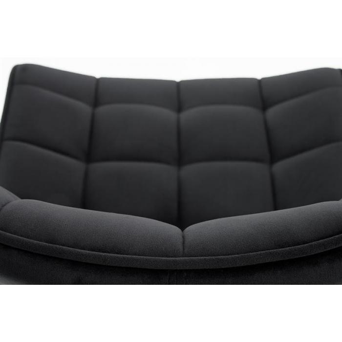 Krzesło Enzo w kolorze czarnym tapicerowane tkaniną Velvet. Na siedzisku zastosowano ozdobne przeszycia. Odpowiednio wyprofilowane nogi schodzące się ku podstawie dzięki temu stanowią stabilną i solidną konstrukcję, która nie przechyli się i nie przewróci. Nogi wykonano z metalu malowanego na czarno metodą proszkową, dzięki temu są odpowiednio zabezpieczone przed korozją i odporne na uszkodzenia.
