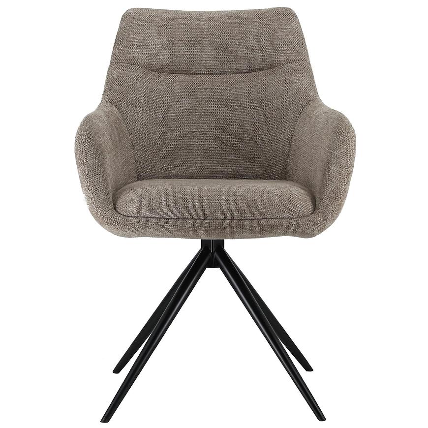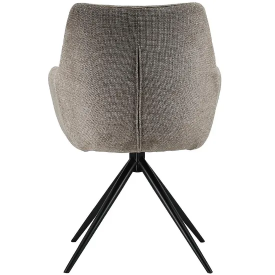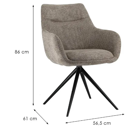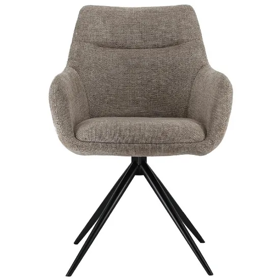 Krzesło Everly W. Armrest 9590 w kolorze brązowym to elegancki i komfortowy mebel, idealny do nowoczesnych wnętrz. Posiada ergonomiczne podłokietniki, które zwiększają wygodę użytkowania. Tapicerowane miękką tkaniną siedzisko i oparcie w odcieniu brązu harmonijnie współgrają z czarnym metalowym stelażem, zapewniając stabilność i trwałość.