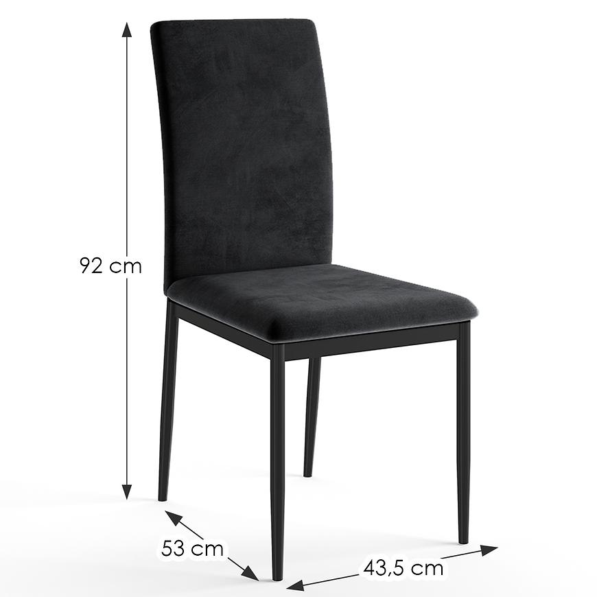Komfort użytkowania gwarantuje miękkie siedzisko wypełnione pianką oraz obite trwałą i przyjemną w dotyku tkaniną, również w kolorze czarnym. Krzesło Farina świetnie sprawdzi się zarówno w jadalni, salonie, jak i w przestrzeniach biurowych czy komercyjnych, oferując stylowy wygląd i wygodę podczas codziennego użytkowania.