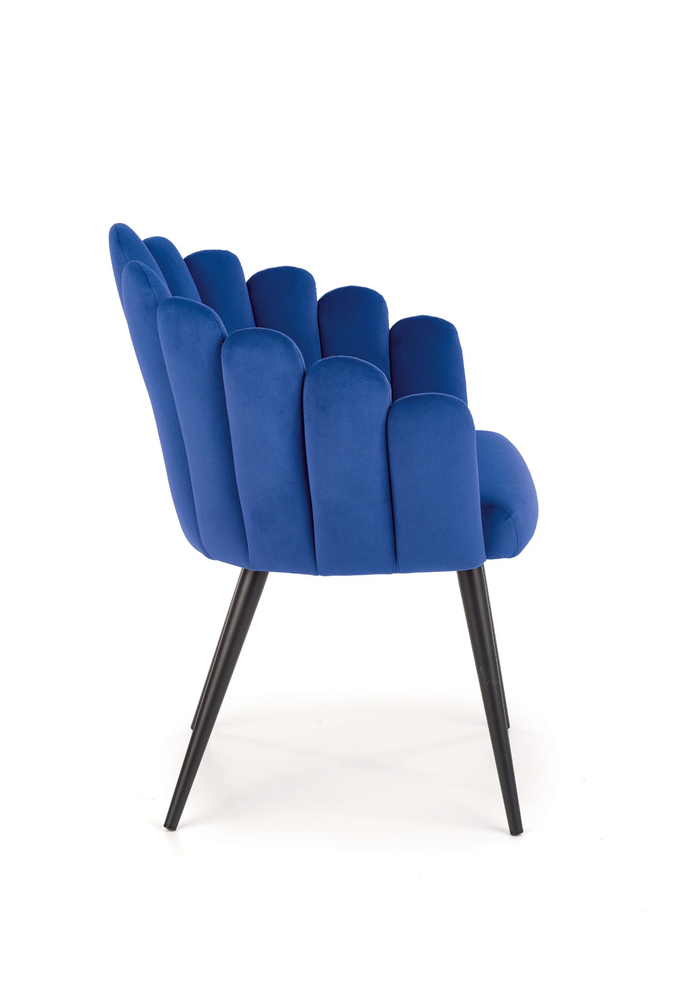 Krzesło Florek to eleganckie i wyjątkowe krzesło, które wyróżnia się pięknym połączeniem tkaniny o głębokim granatowym kolorze z wytrzymałą stalą malowaną proszkowo. Siedzisko i oparcie krzesła zostały starannie pokryte miękką tkaniną w intensywnym granatowym kolorze, co nadaje mu luksusowego wyglądu i przytulnego charakteru.