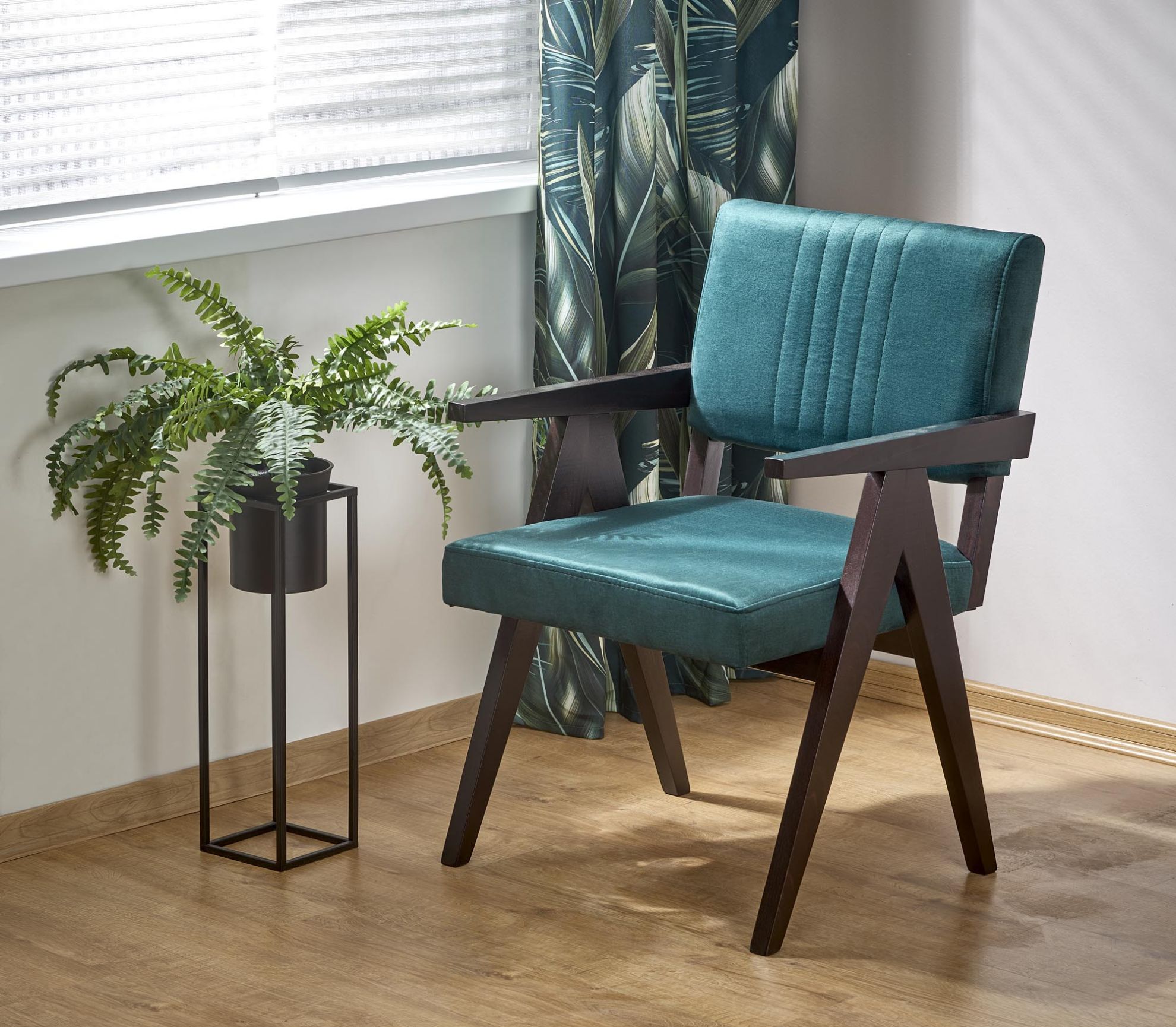 Krzesło Foam to połączenie eleganckiego drewna litego bukowego z luksusową tkaniną velvet o głębokim odcieniu MONOLITH 37 (ciemny zielony) oraz stelażem w kolorze hebanu, co tworzy wyrafinowany i stylowy mebel. To krzesło emanuje klasyką i komfortem.