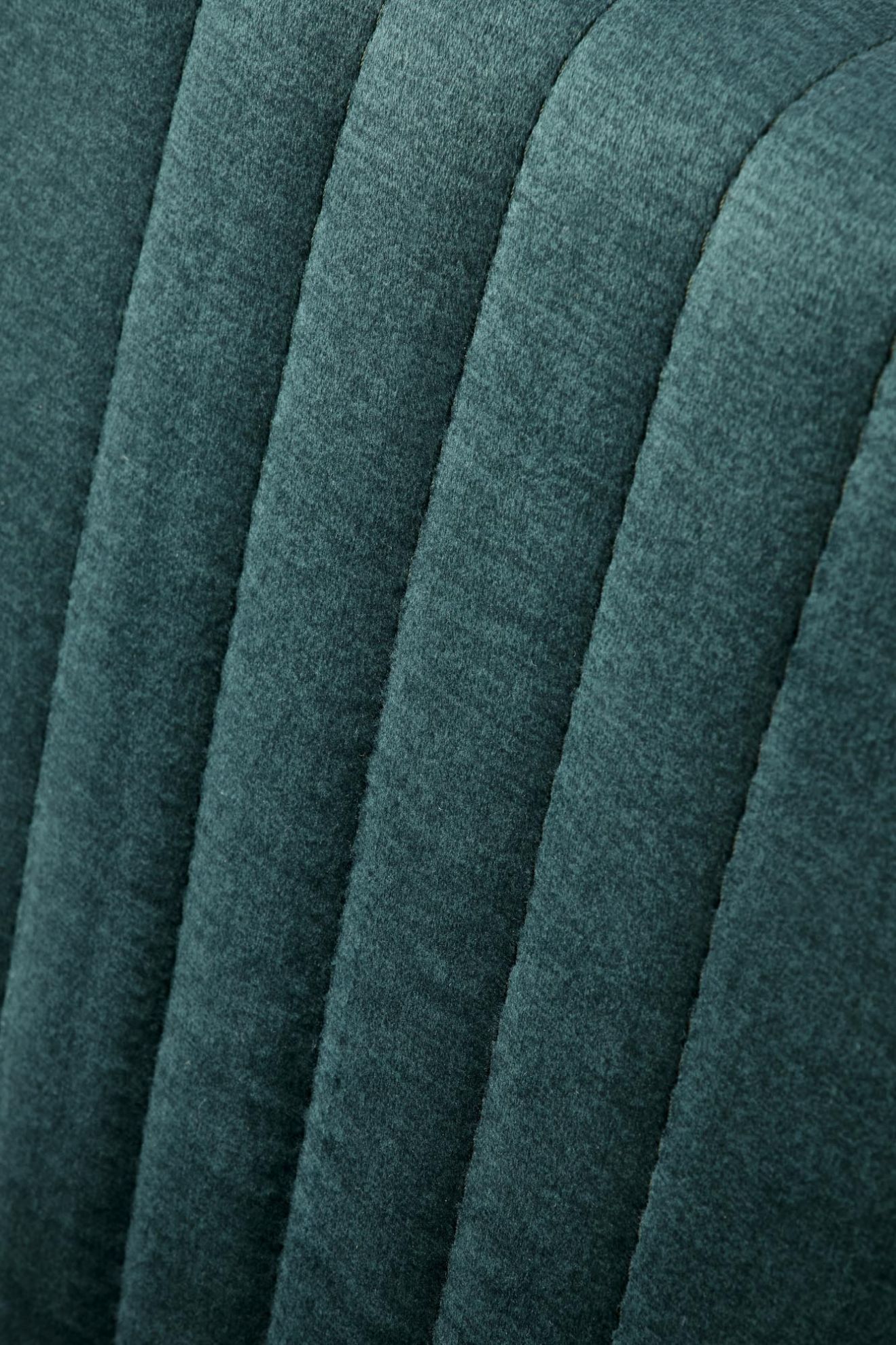 Siedzisko i oparcie krzesła zostały wykończone miękką tkaniną velvet, która jest nie tylko piękna wizualnie, ale także zapewnia niesamowity komfort siedzenia, co sprawia, że to krzesło jest idealne do długotrwałego relaksu.