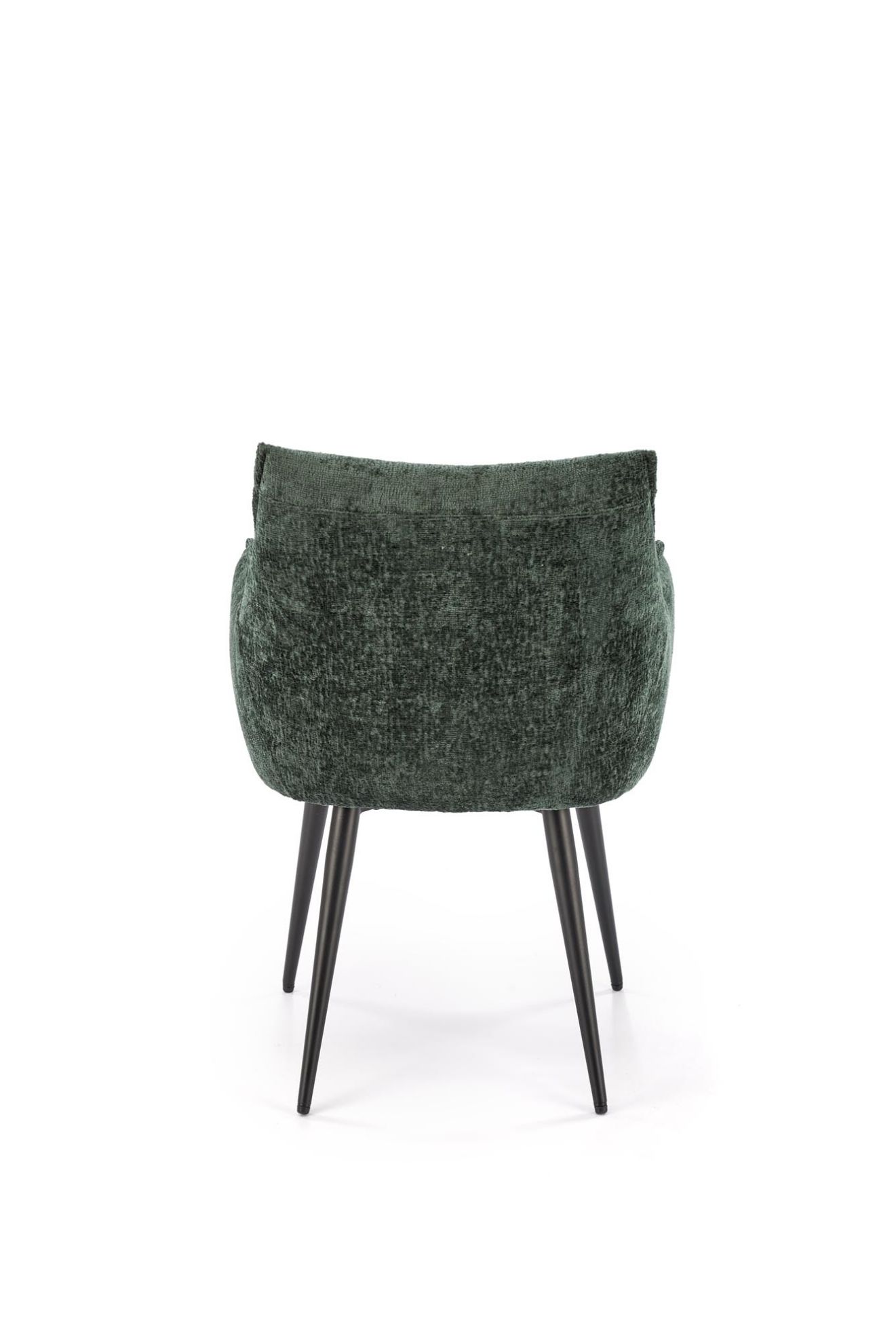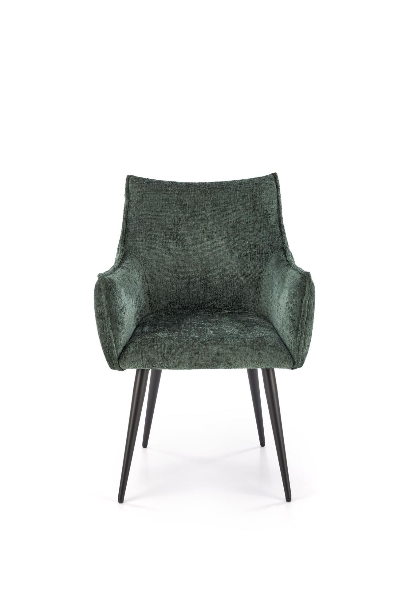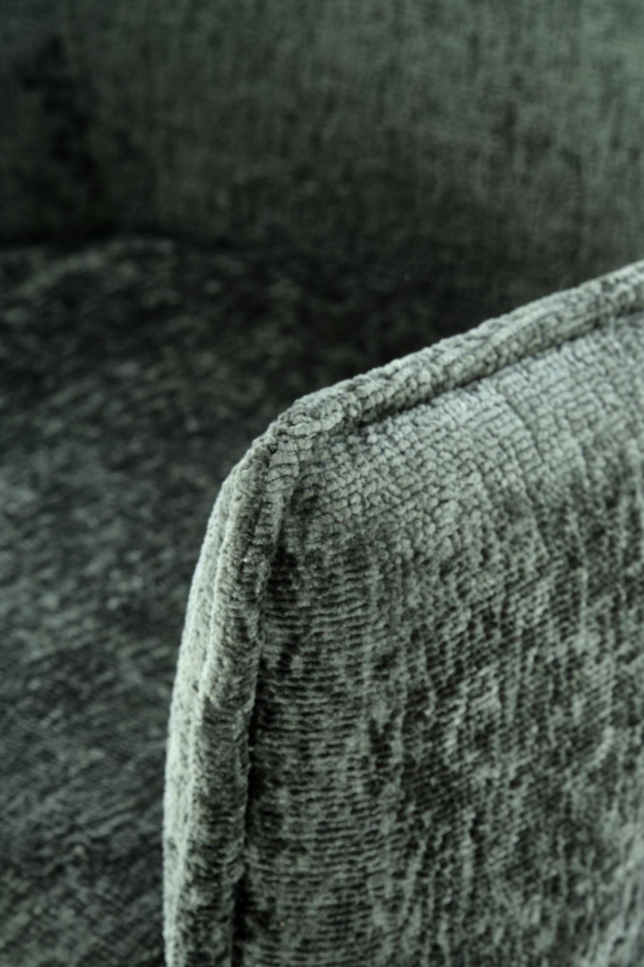 Obicie z tkaniny w eleganckim ciemny zielony kolorze dodaje krzesłu subtelnej elegancji, która doskonale wpisuje się w nowoczesne aranżacje wnętrz. Stalowe nogi malowane proszkowo zapewniają stabilność i trwałość, a ich matowe wykończenie podkreśla nowoczesny charakter krzesła.