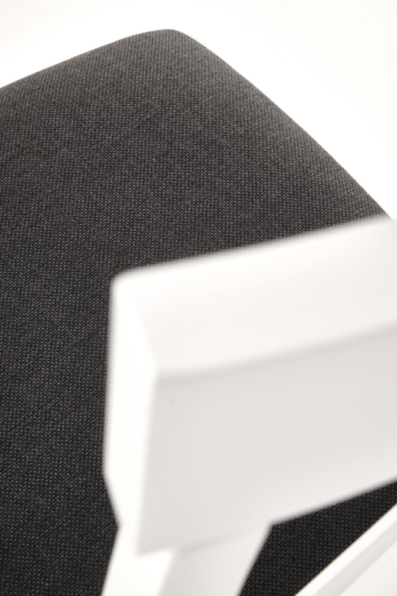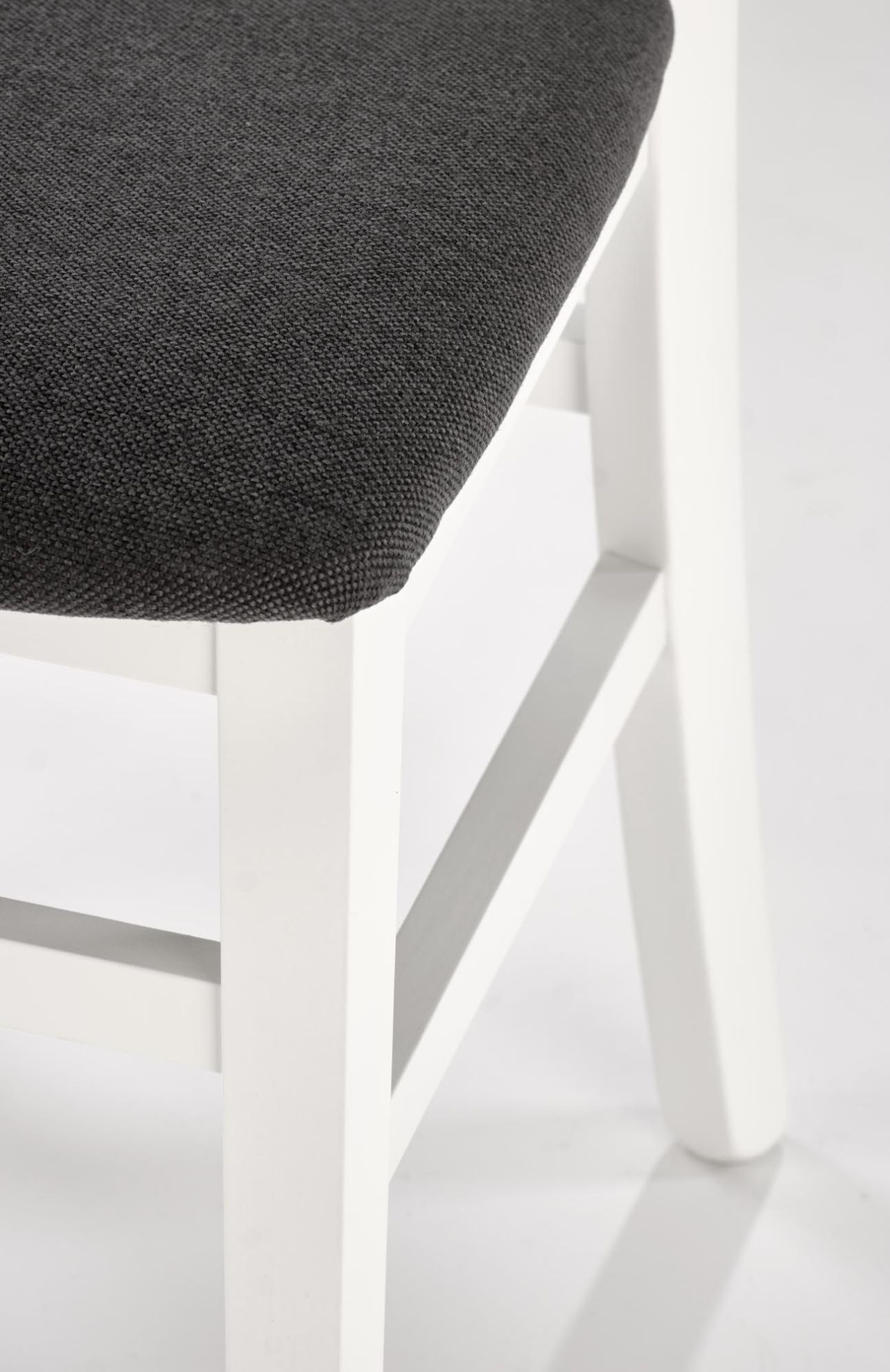 Krzesło wykonane jest z litego drewna bukowego, które gwarantuje trwałość i stabilność. Drewno jest pomalowane na biało, co nadaje krzesłu nowoczesny i świeży wygląd. Siedzisko oraz oparcie obite są wysokiej jakości tkaniną INARI 95, która jest nie tylko trwała, ale również przyjemna w dotyku. Kolor tkaniny doskonale komponuje się z białą ramą, tworząc harmonijną i elegancką całość.