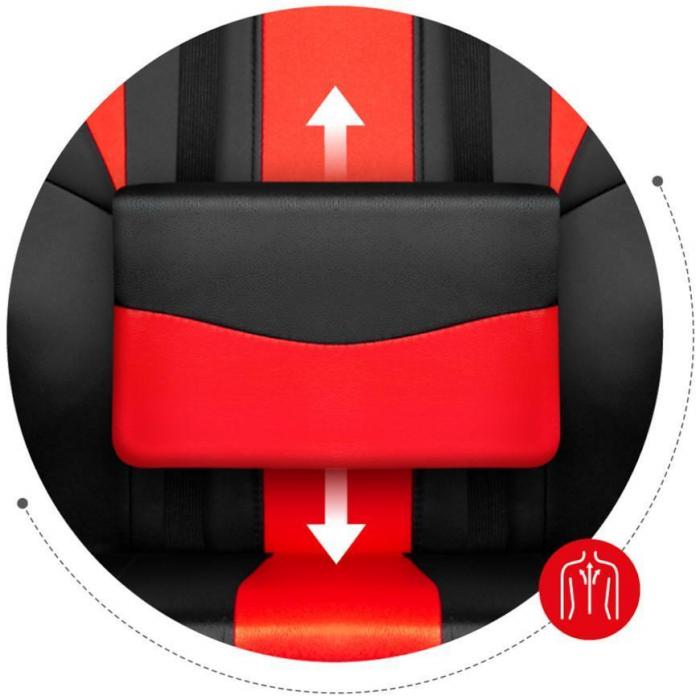 Profesjonalny i wygodny fotel gamingowy stworzony został dla wszystkich zaawansowanych graczy, ale również dla osób, które spędzają większość czasu w pozycji siedzacej przed komputerem. Każdy szczegół krzesła spełnia wszystkie wysokie wymogi ergonomii oraz posiada ważne certyfikaty SGS i CE, które są potwierdzeniem najwyższej jakości wykonania i materiałów. Fotel zapewnia utrzymanie prawidłowej postawy, w szczególności pleców. Poduszka lędźwiowa pozwala na prawidłowe ułożenie kręgosłupa, natomiast zadaniem poduszki mięśni karku jest odpowiednie ułożenie szyi i głowy. Fotel ma możliwość regulacji wysokości siedziska. Funkcja TILT PLUS pozwala na bujanie i przechylenie oparcia. Materiał jest wytrzymały i odporny. Krzesło gamingowe wykonane jest ze specjalnej, wygodnej gąbki Free Air w połączeniu z zimną pianką, które charakteryzują się jakością i odpornością na odkształcenia. Antypoślizgowe podłokietniki pozwalają na odpowiednie i swobodne wspieranie przedramion, odciążając przy tym barki i kręgosłup.