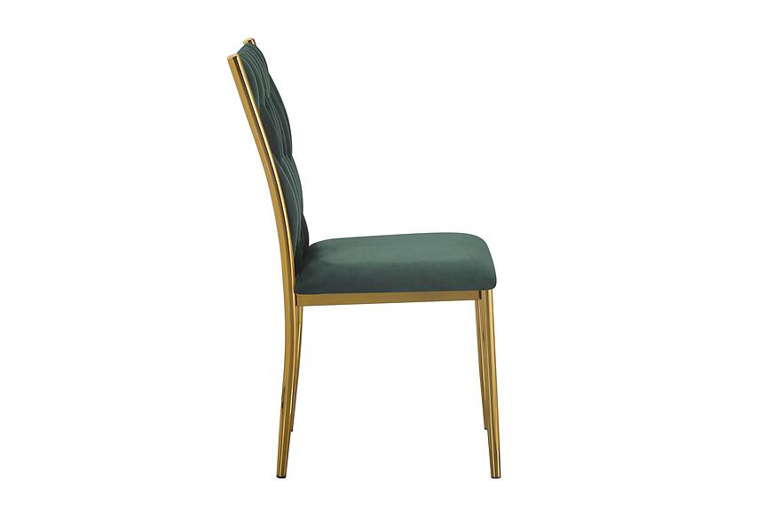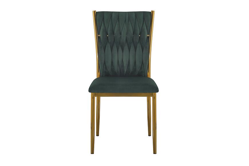 Krzesło Glamour 12510 zielone/złote to eleganckie połączenie nowoczesnego stylu z nutą luksusu. Wykonane z połączenia metalu i miękkiej tkaniny tapicerskiej, zachwyca trwałością oraz wyjątkowym designem. Zielone siedzisko z wygodnym wypełnieniem z pianki zapewnia komfort, a złoty stelaż dodaje blasku i lekkości konstrukcji. Krzesło ma wysokość 95 cm, wysokość do siedziska 49 cm, szerokość 48 cm i głębokość 58 cm, przy wadze 7 kg. To wyjątkowy mebel, który łączy styl, wygodę i solidne wykonanie, wymagający samodzielnego złożenia.