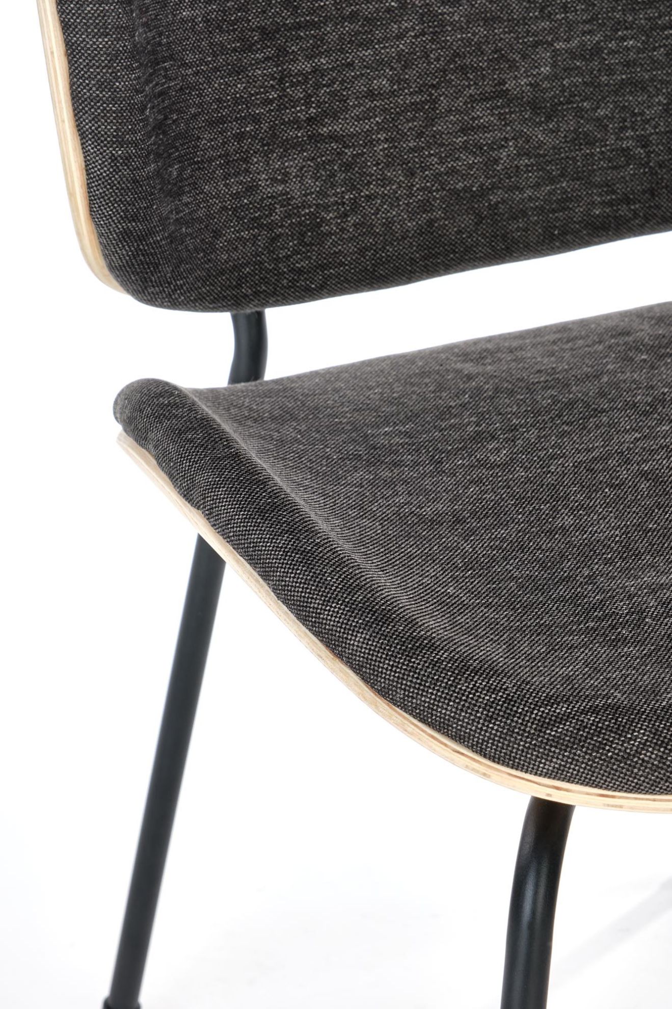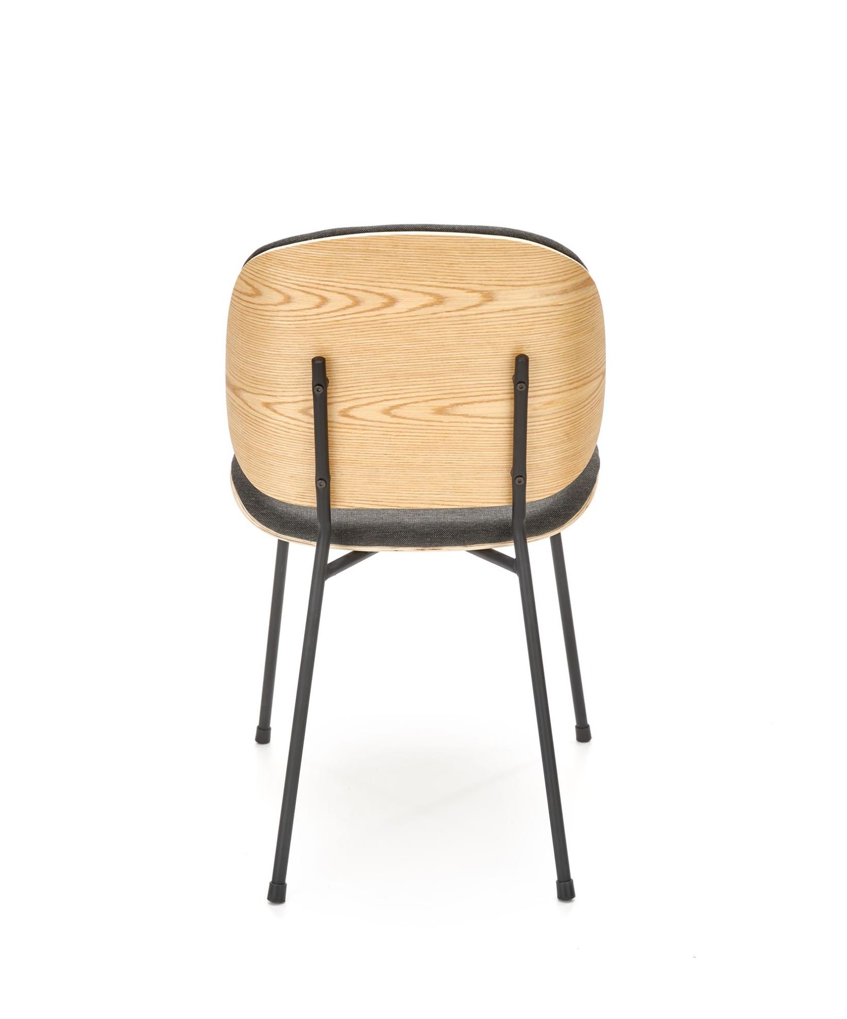Sklejka gięta została wykorzystana do wykonania siedziska i oparcia, co daje krzesłu wytrzymałość i elastyczność. Sklejka gięta doskonale kontrastuje z tkaniną, tworząc efektowny i nowoczesny wygląd.