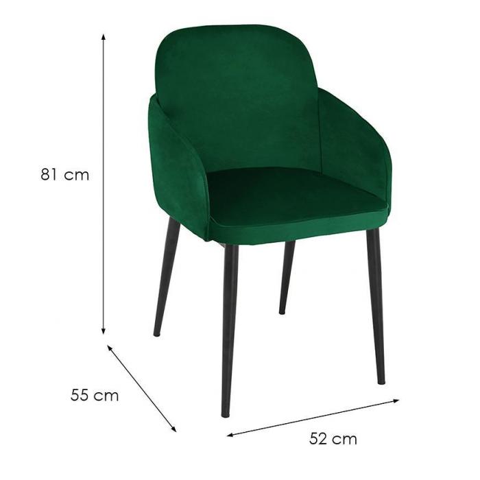 Stelaż krzesła został wykonany z metalu, natomiast siedzisko tapicerowane jest tkaniną. Wysokość do siedziska wynosi 45 cm.