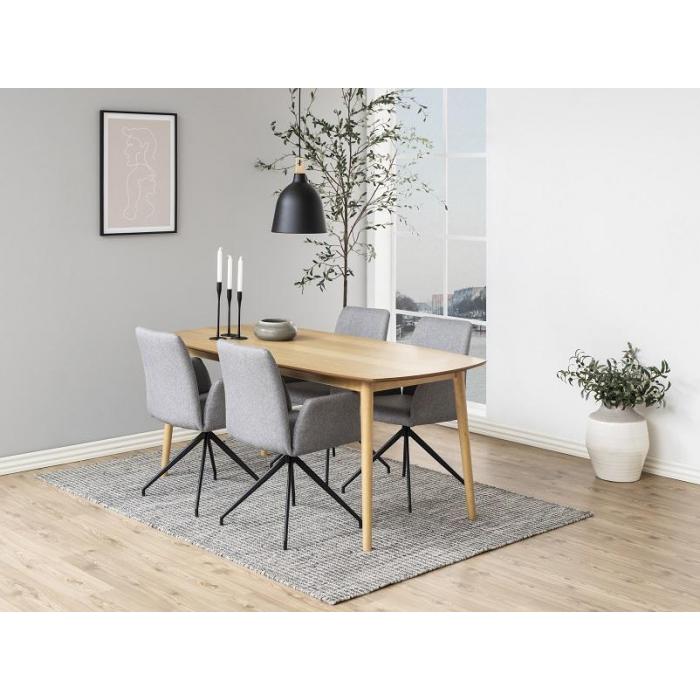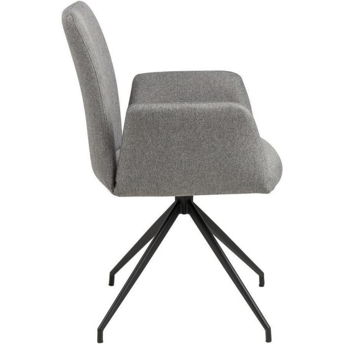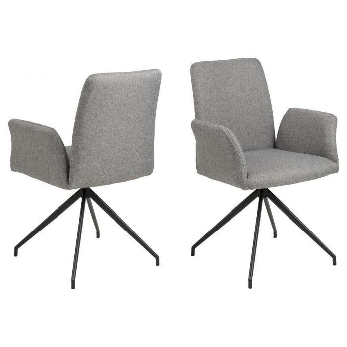 Doskonale wpasuje się w każdą jadalnie i nie tylko - krzesło świetnie sprawdzi się również w innych pomieszczeniach, jak na przykład pokój dzienny czy kuchnia. Dzięki swojej kolorystyce, która jest stonowana, krzesło jest uniwersalne i wpasuje się w większość aranżacji. Posiada charakterystycznie wyprofilowane oparcie, które pozwala na swobodne ułożenie pleców. Kolejny atut to wygodne, obite miękką tkaniną siedzisko, które zagwarantuje komfort użytkowania. Dodatkowo podłokietniki sprawiają, że jest to idealne krzesło na dłuższe spotkania przy stole z rodziną i z przyjaciółmi, gdyż jest wygodne i komfortowe. Nóżki są w kolorze czarnym, co dodatkowo ozdobi całość mebla i nada odpowiedniego stylu. Krzesło posiada cztery nóżki, które są malowane proszkowo i zagwarantują stabliność.